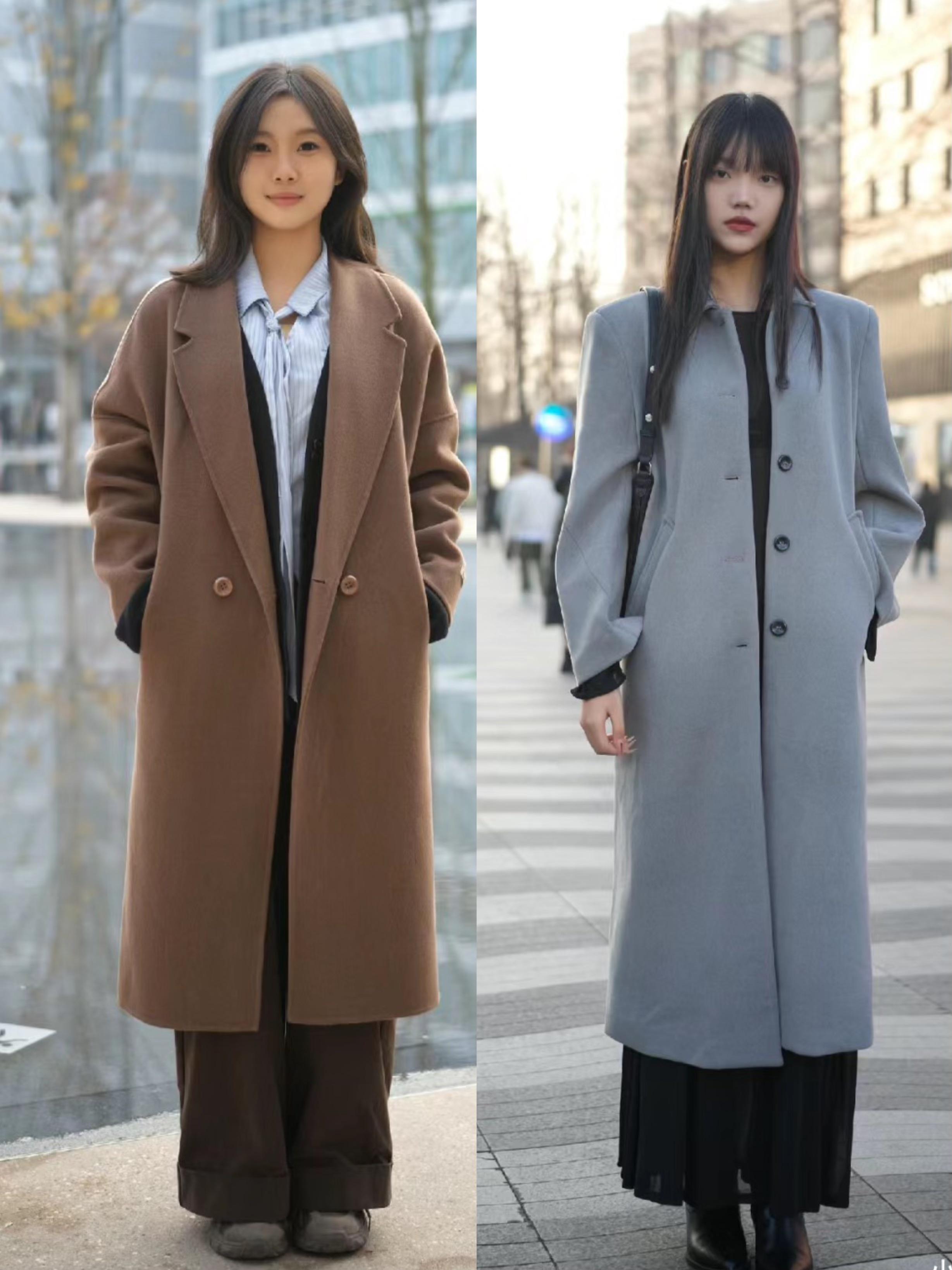 基礎款的毛呢大衣,可以疊搭經典的黑色連衣裙,也可以疊搭襯衫+西服外套,玩轉最利落顯氣質的疊搭。這種大衣+西服的疊搭,最適合上班族了,時髦耐看又不臃腫。