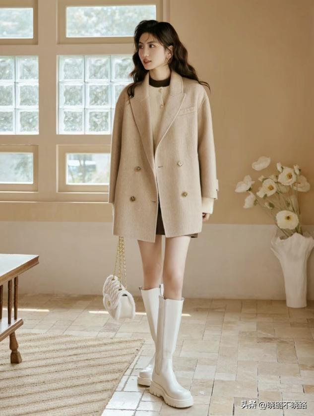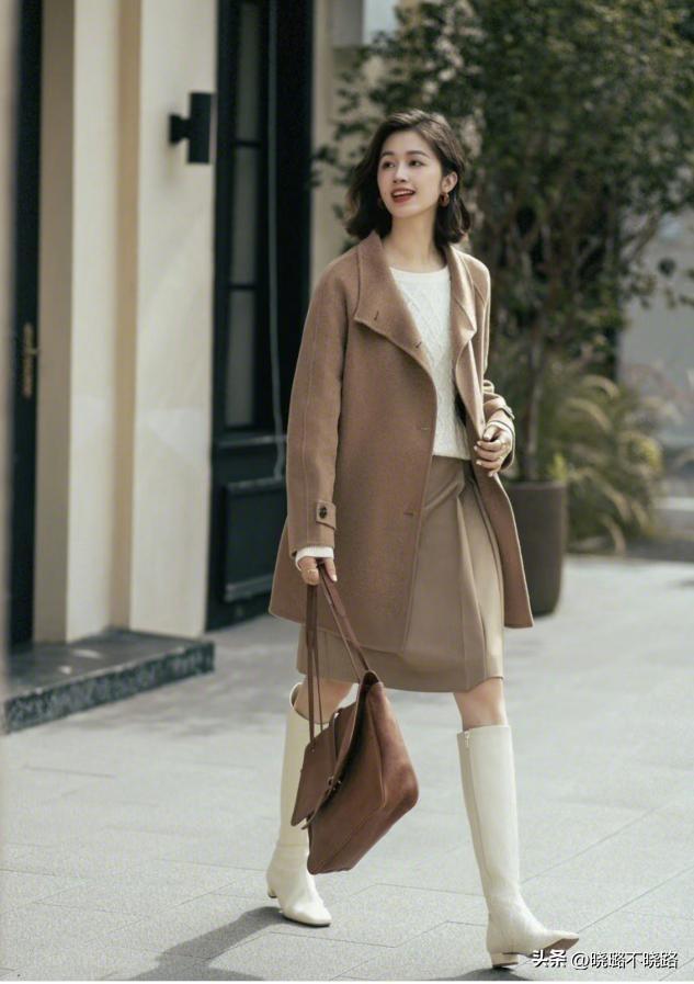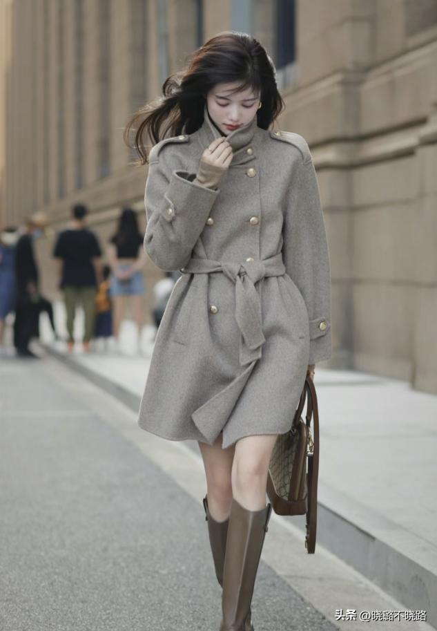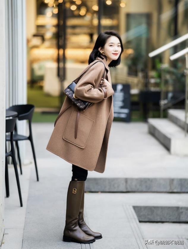 奶奶大衣的搭配一定要在高腰的位置有所收腰的效應,在穿起來的時候與靴子這一款單品,如果是同色的話更能夠讓整個下半身的腿型狀態更加的顯纖細以及纖長感。