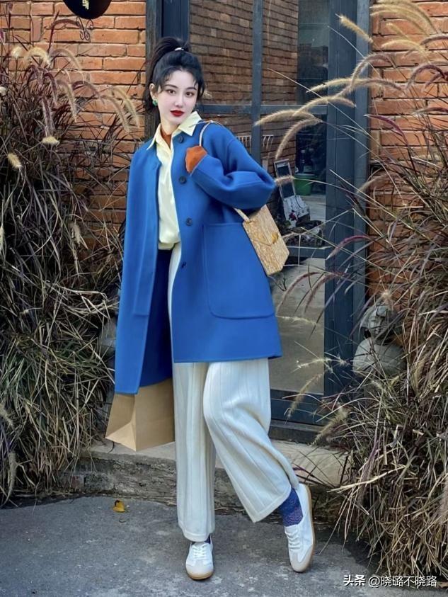 第2種穿搭就是奶奶大衣一定要組合一些利落感的煙管下裝,例如像裙裝或者褲裝都完全可以適用於職場通勤的時候來進行搭配,在選擇顏色組合的時候基礎色結合沉穩感比較明顯且飽和度較低一些的彩色系是最具有優勢的穿搭了。