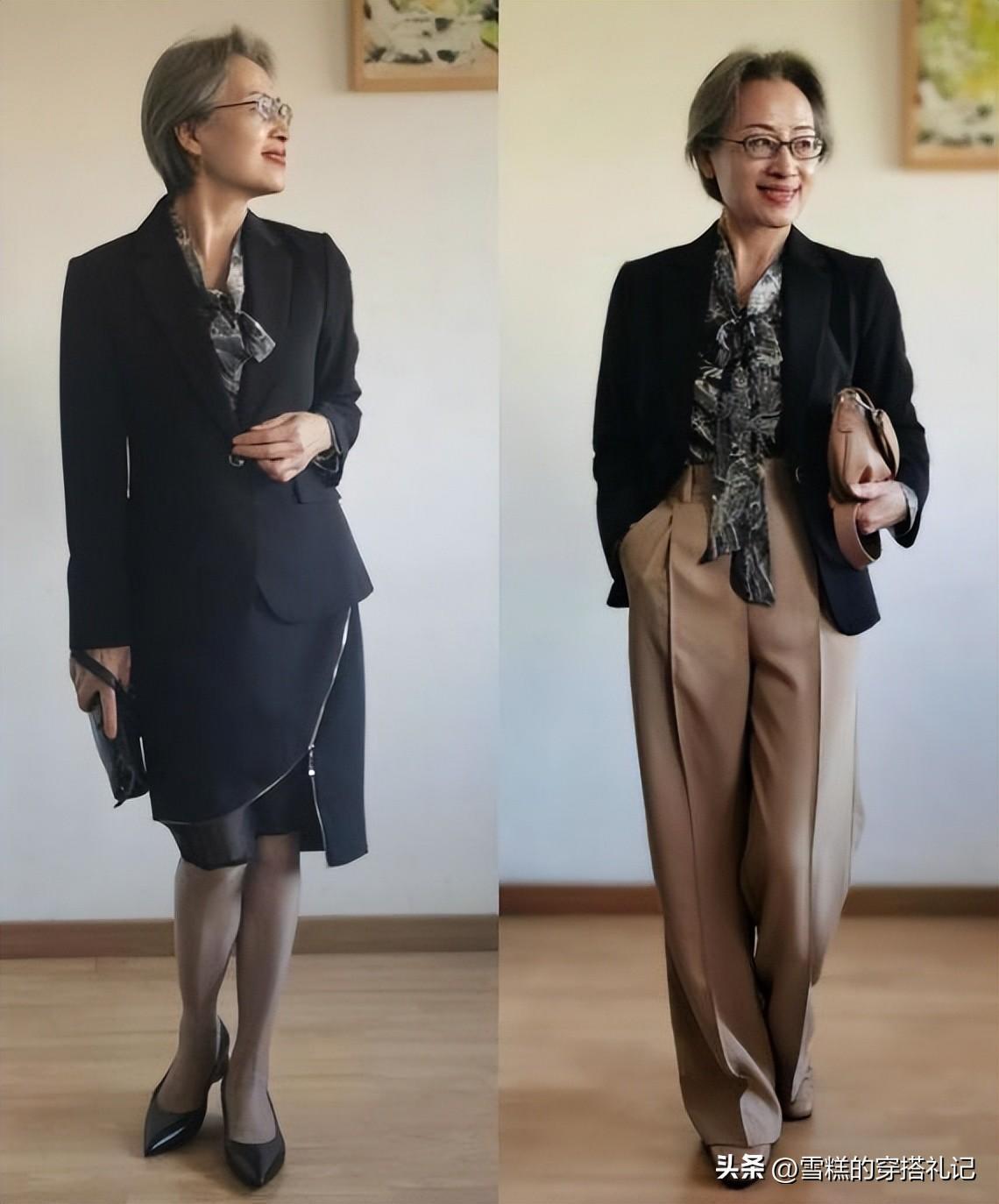 在運用色系方面,老年女性的上衣建議選擇黑白灰這樣永恆經典的配色,具有簡潔而高雅的感覺。而在下裝可以選擇顯白的紅色系以及飽和度較低的彩色,這些顏色的選擇能夠很好地襯托肌膚和氣質。不僅凸顯了個人風格,還能展示自身獨特的品味。
