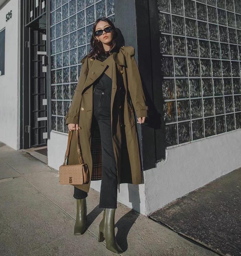 褲靴顏色一致,不僅爲整個造型增加了和諧度,還能很好拉長你的雙腿比例,特別是這種高跟的短靴,與九分褲結合,大長腿的既視感。