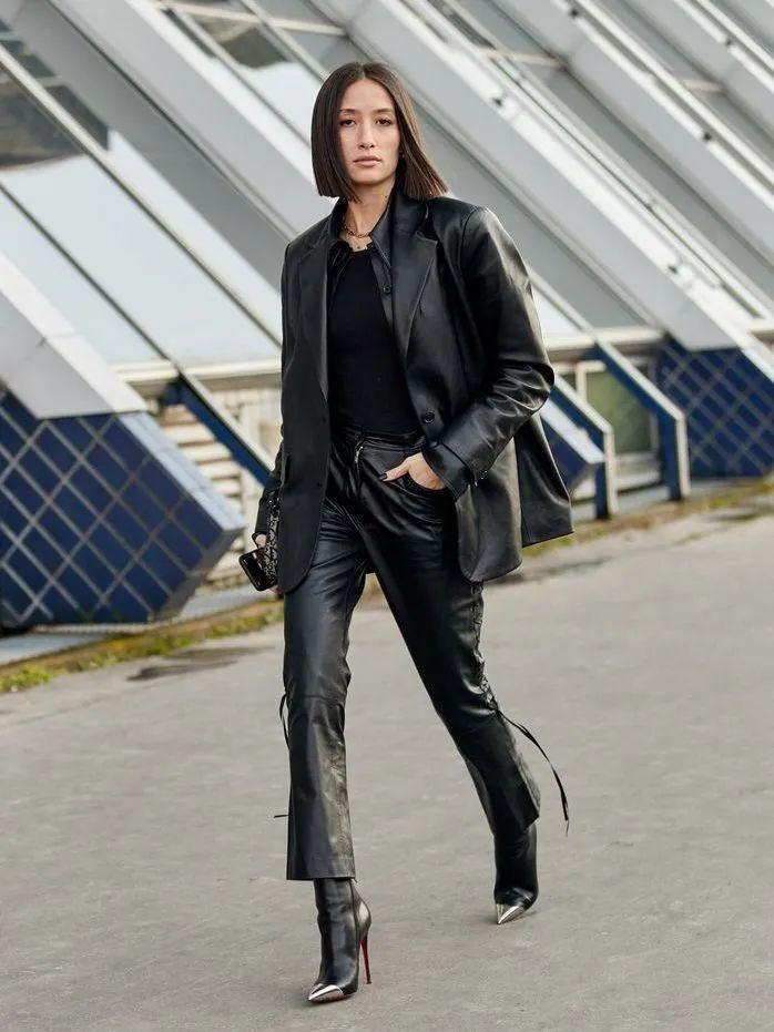 若你換成了尖頭的黑色短靴,那麼效果會更加明顯,加上同色的褲子,雙腿的比例會更修長。