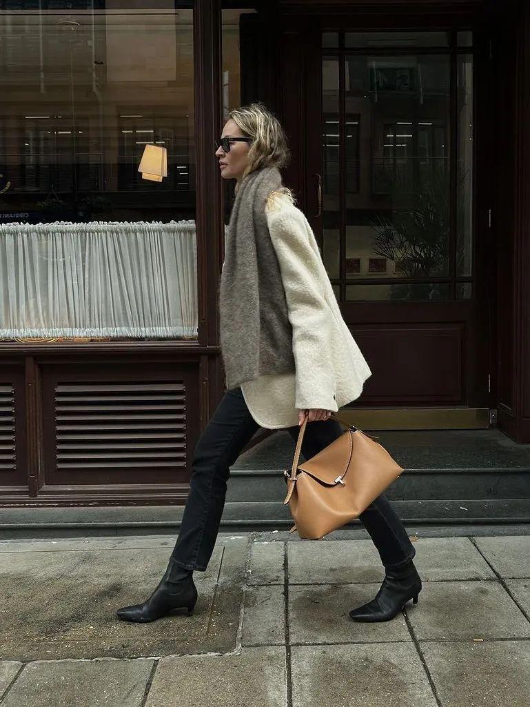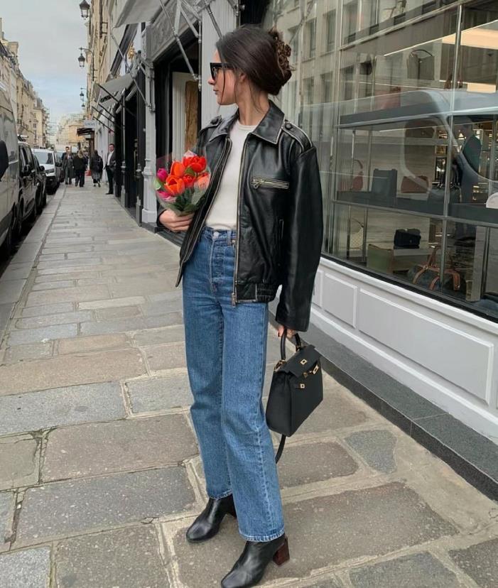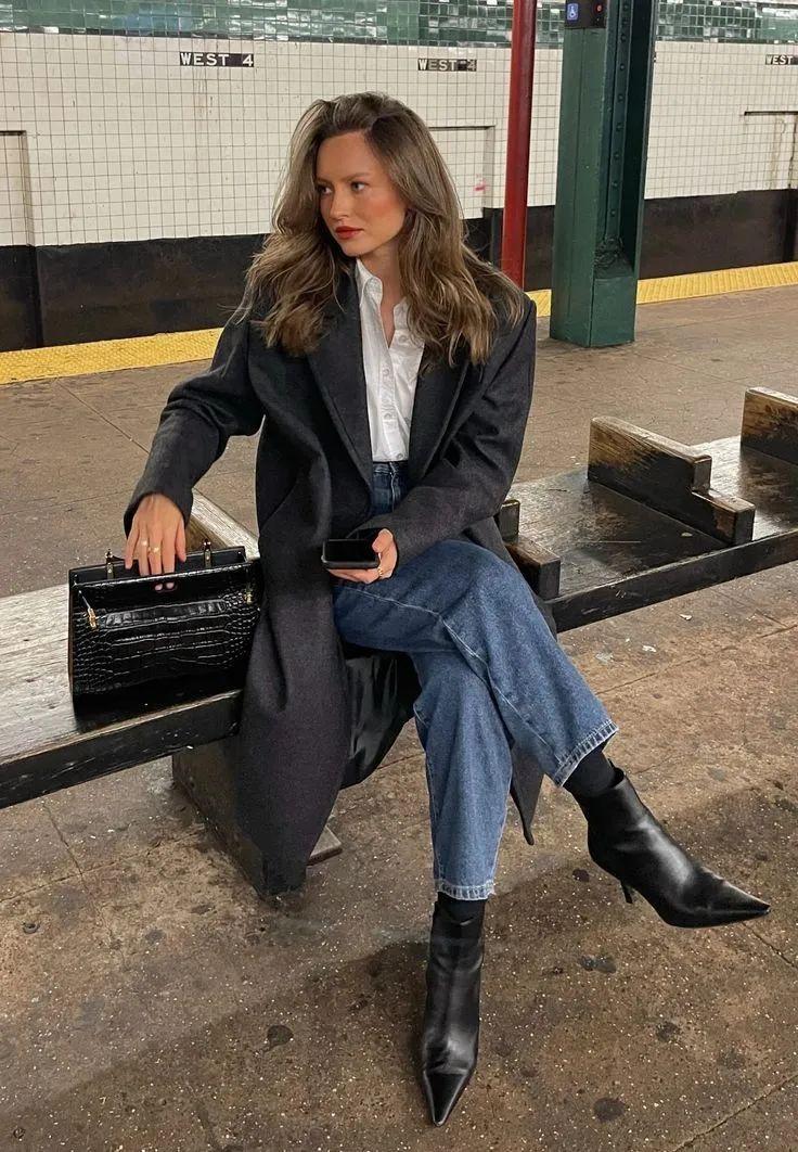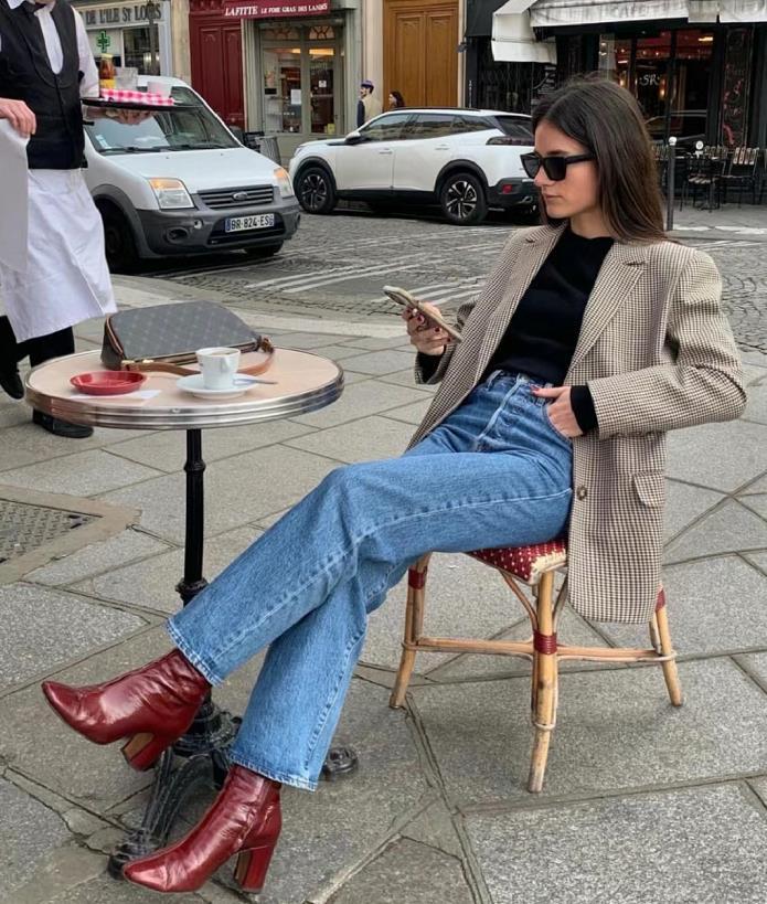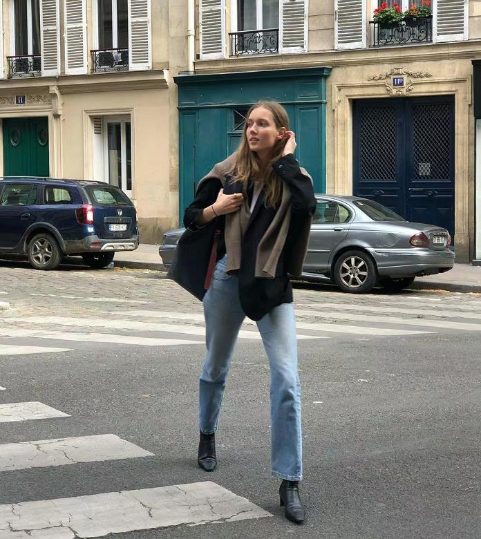 很喜歡法國街頭那些博主們的穿搭,優雅大方又氣質十足,九分牛仔褲+高跟短靴,這樣組合的穿法,可以輕鬆打造出大長腿和高挑感。