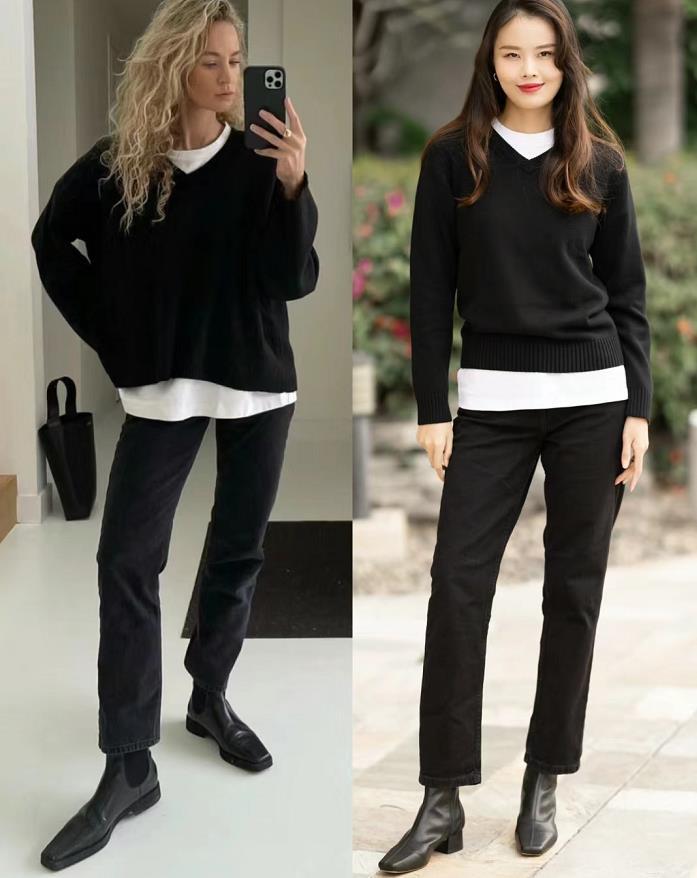 黑色可是最適合冬季的顏色了,也很經典百搭耐看,如果你不喜歡穿牛仔藍的九分褲,也可以直接入手黑色款。