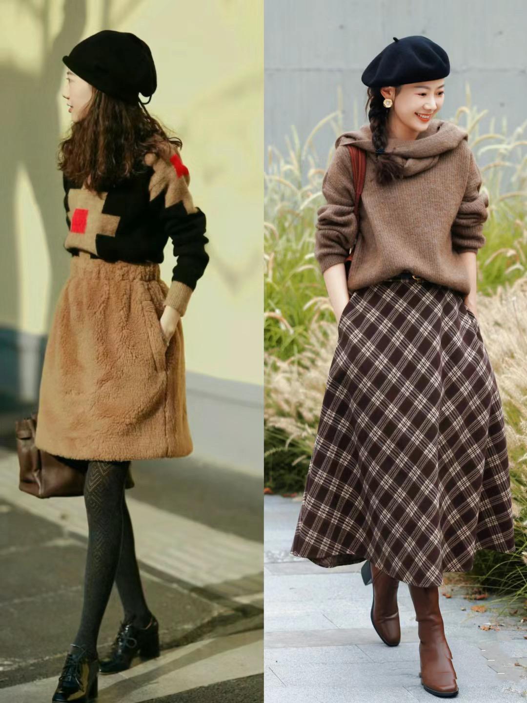 毛衣+半身裙,凸顯出女性的時尚魅力