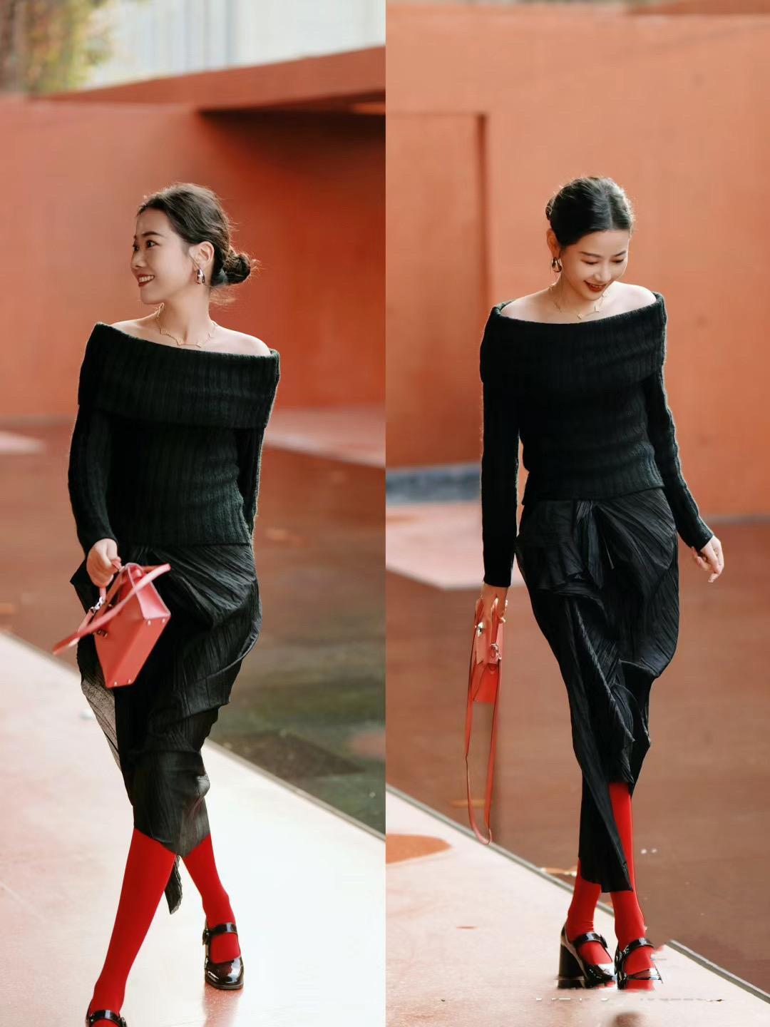 年底的時候,大家都比較喜歡氛圍感十足的穿搭。比如紅黑配色、就是一種高級又醒目的穿着方式,紅色毛衣+黑色半身裙,把新年氛圍感拉滿。