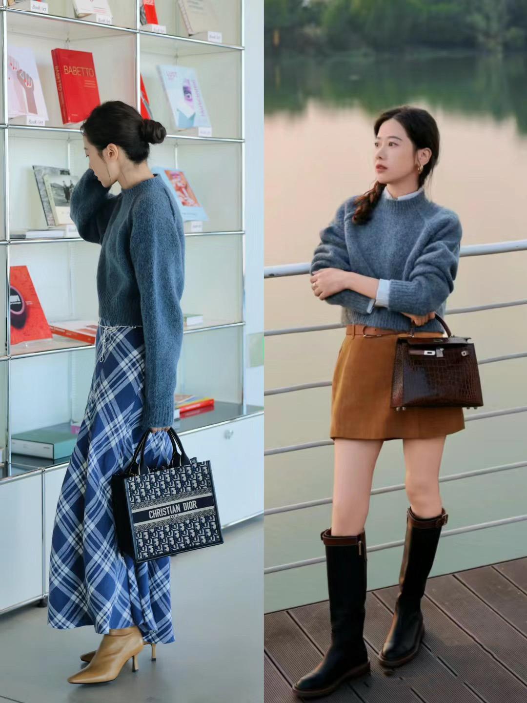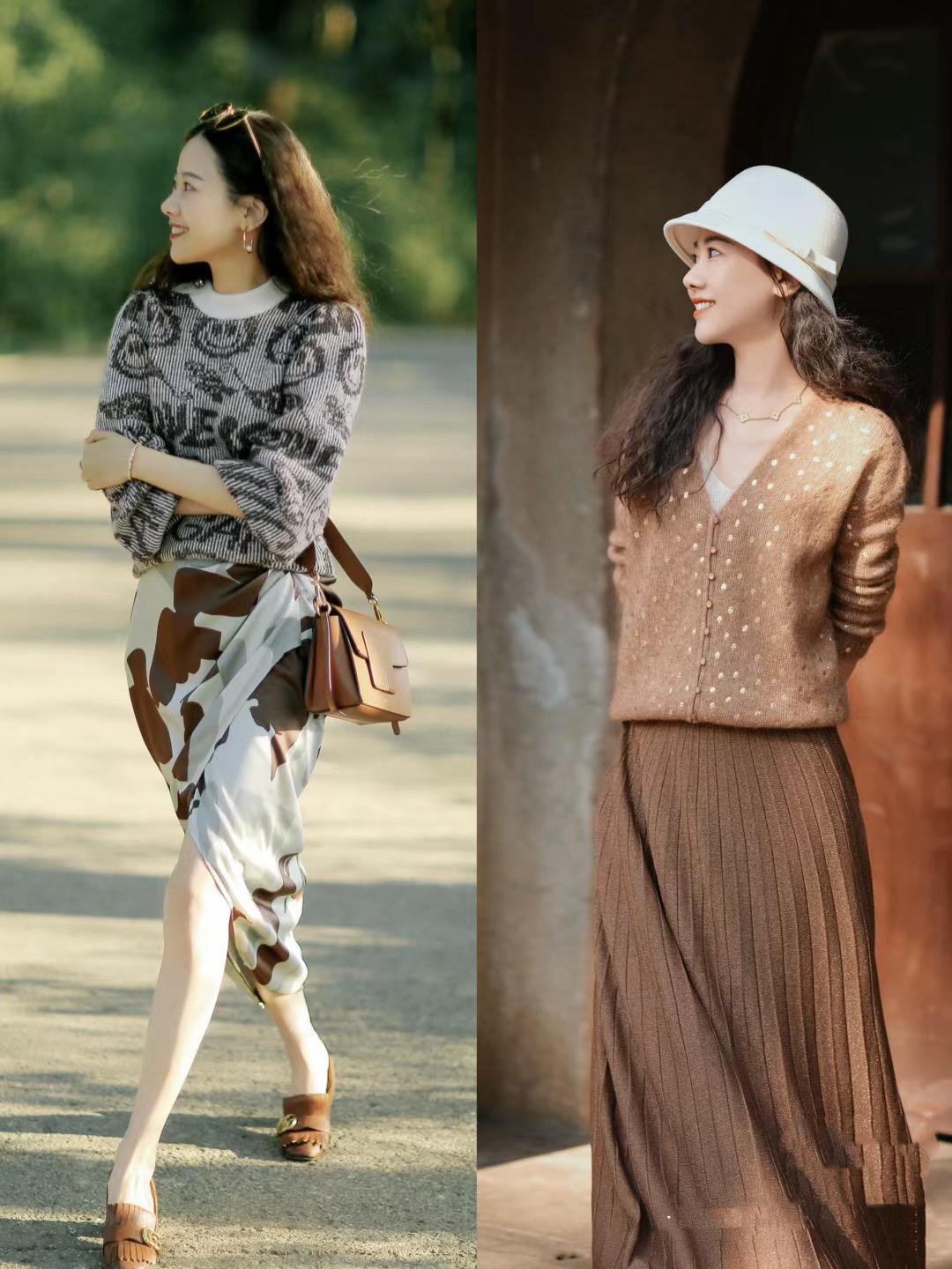 氣質溫柔的女人,穿毛衣建議“配裙不配褲”,舒適體面又耐看!