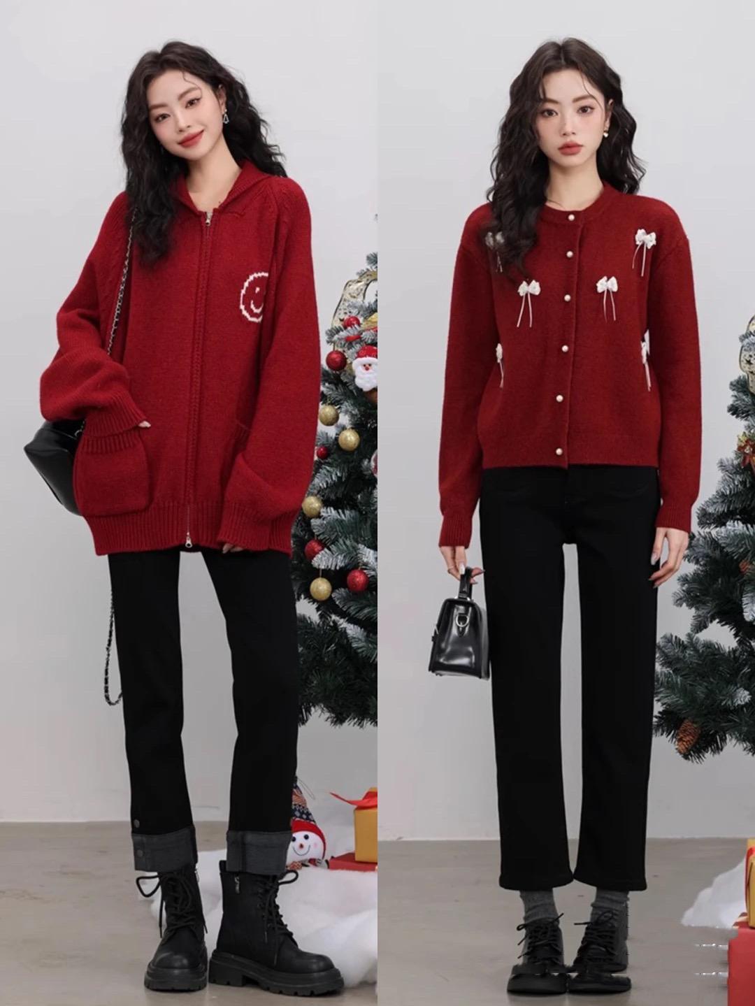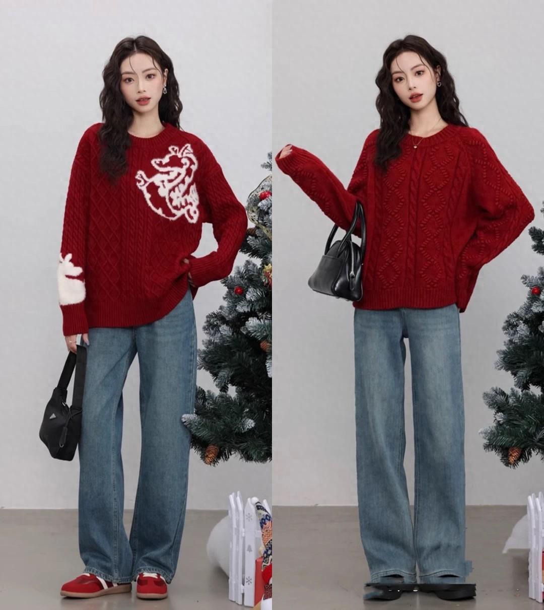 溫暖的紅色毛衣、屬於基礎百搭又不挑人的款式。不管是男女老幼、在新年的時候都可以給自己搭配一件紅色毛衣,或是開衫或是套頭款,或是純色或是卡通印花,都擁有不一樣的魅力。