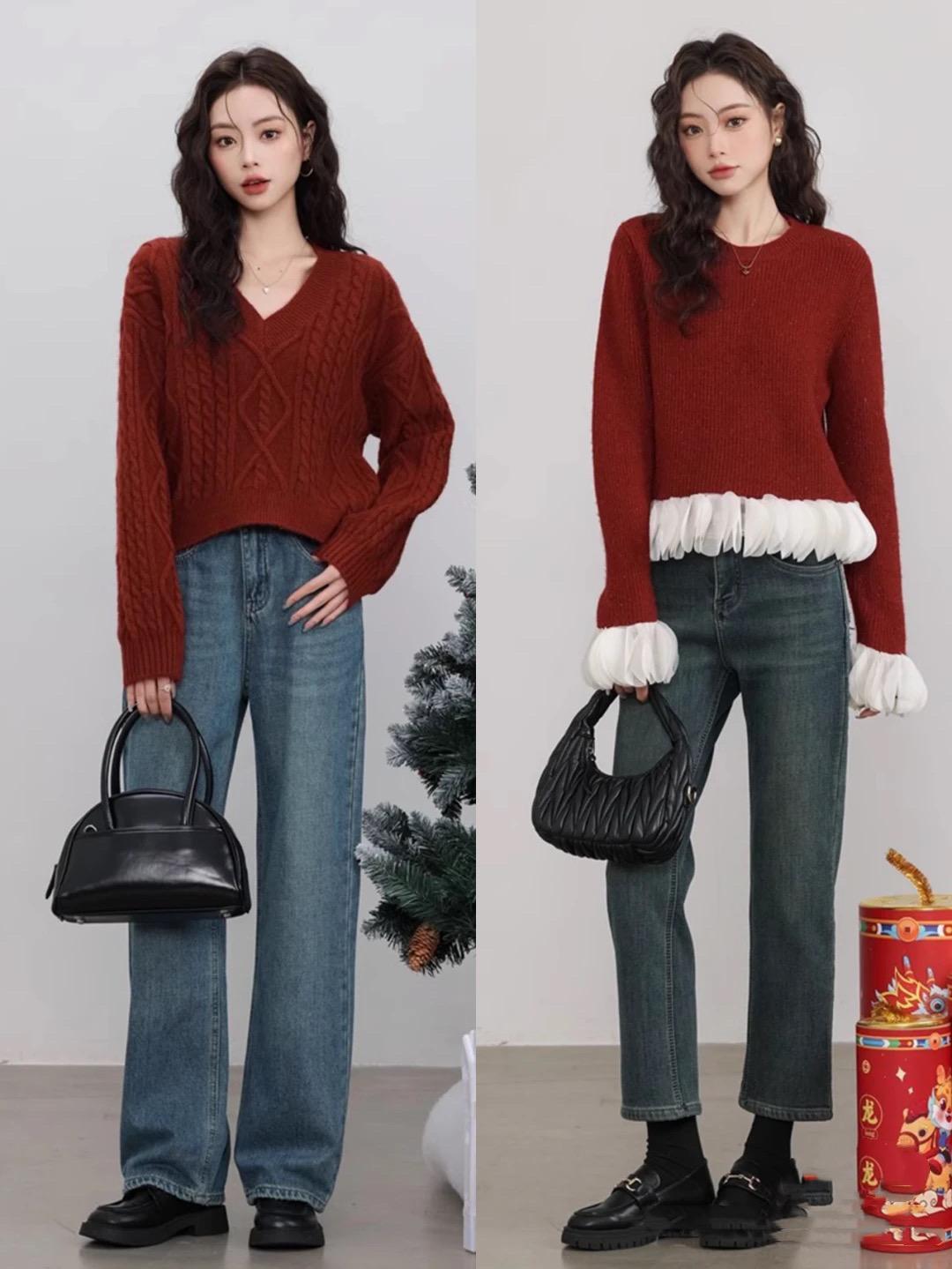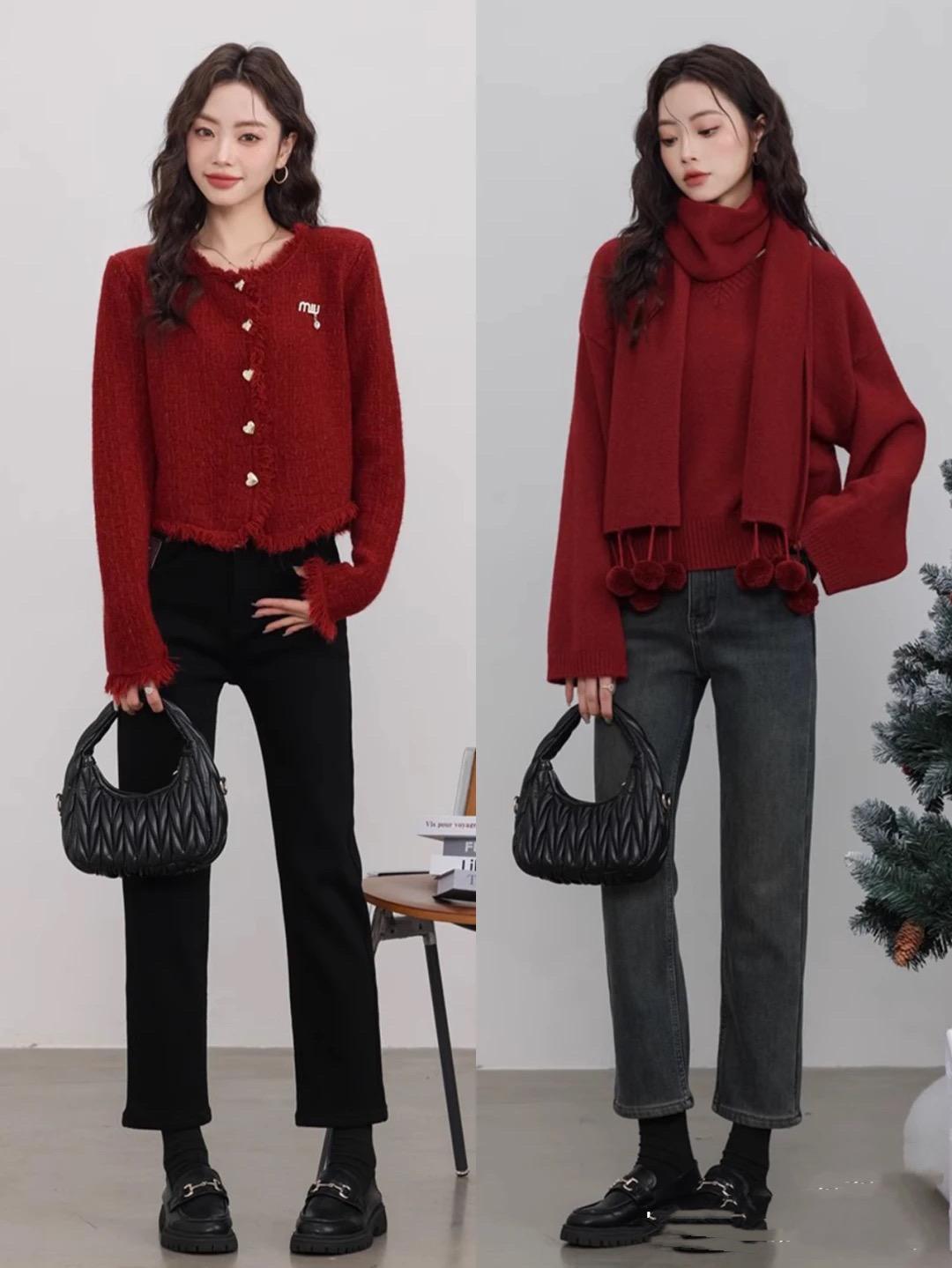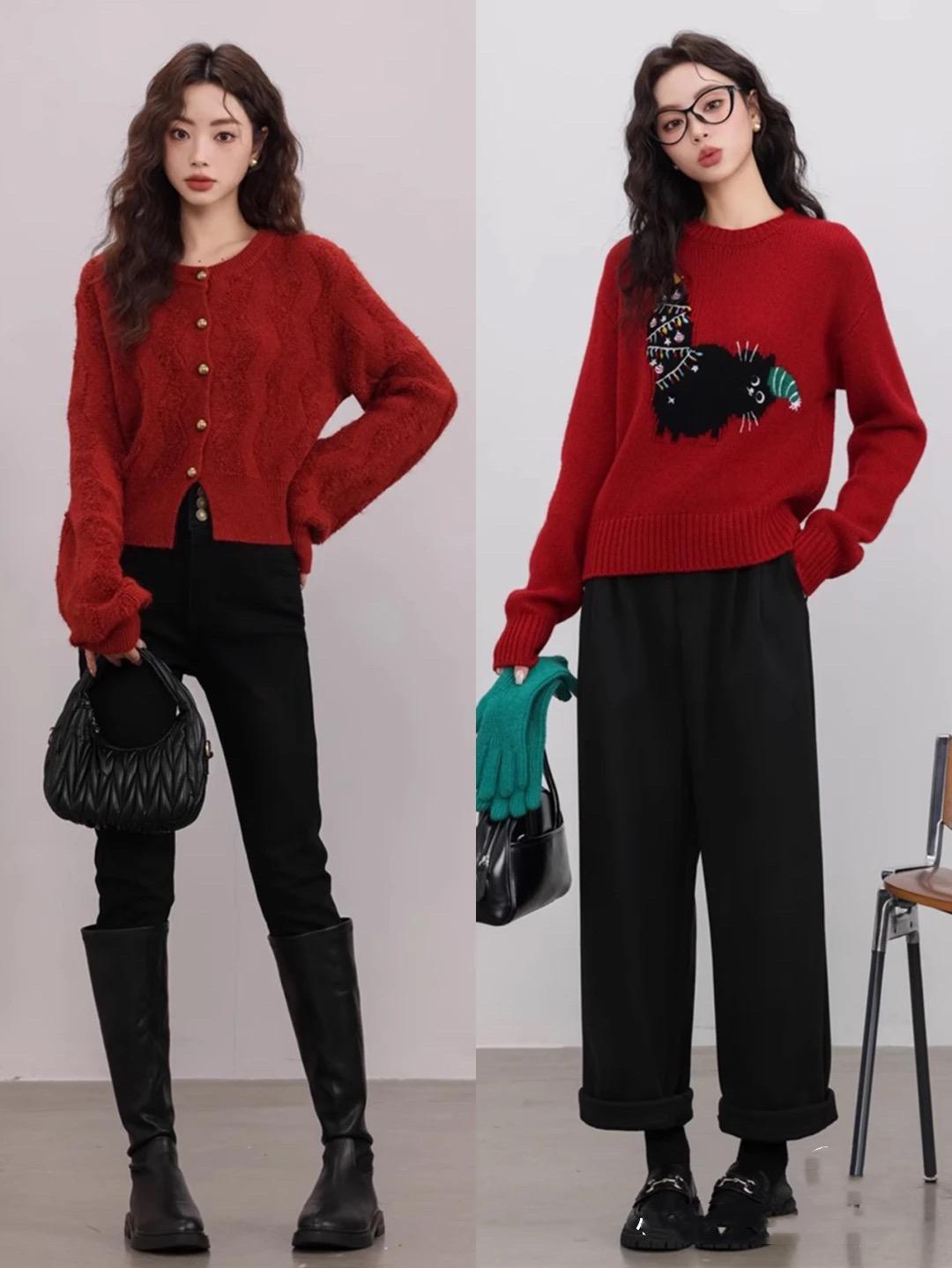 如果覺得國風系列不夠實穿,屬於那種只能穿一兩次的服裝,那麼我們可以選擇紅色的單品。其中紅色毛衣就最爲實穿,不僅新年穿更應景、平日裏穿着也溫暖提氣色,一點都不浮誇。
