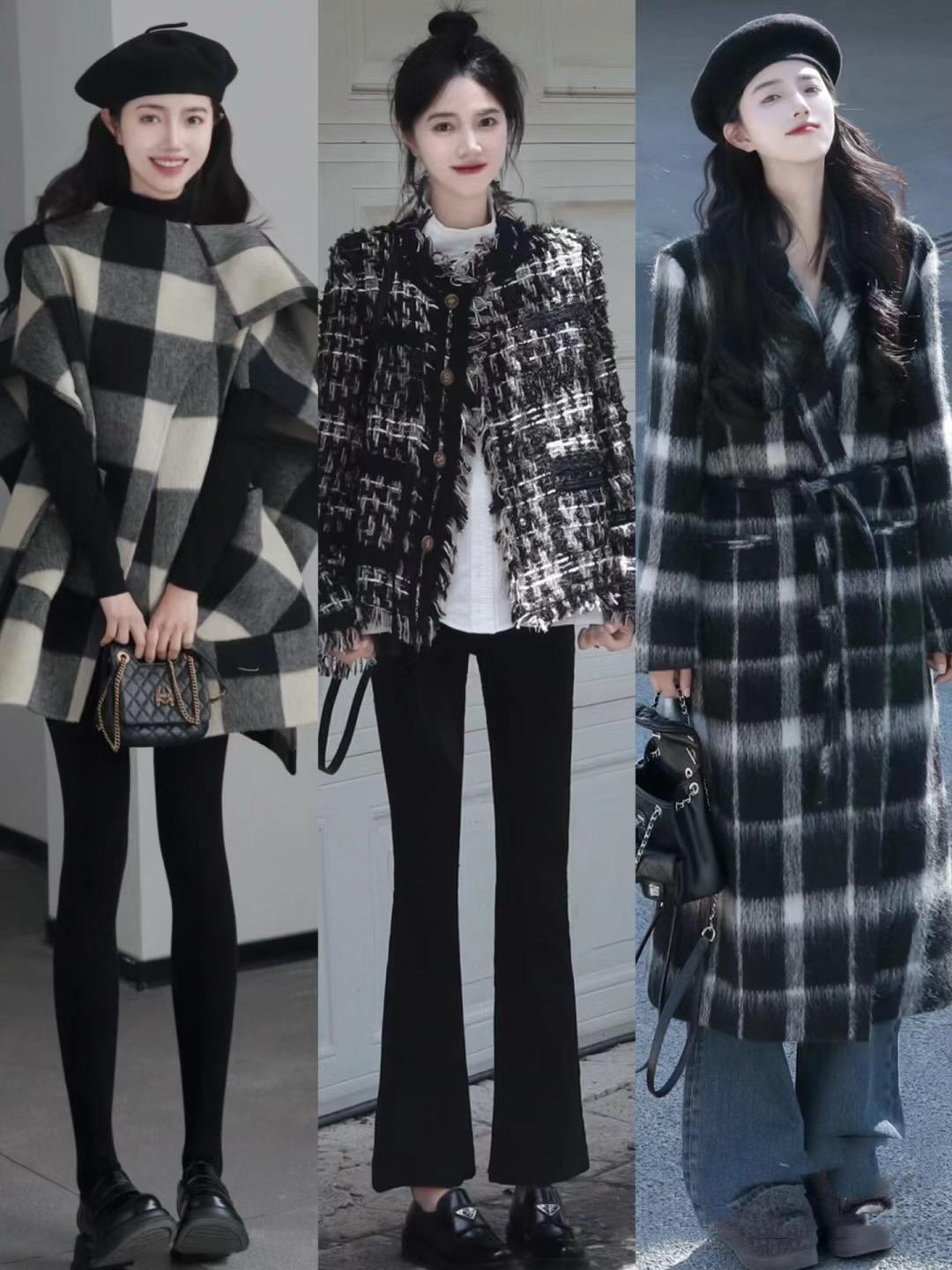 時髦洋氣的微喇褲,真的是怎麼穿都不過時。這種復古又耐看的經典格子外套,我們可以選擇短款也可以選擇長款,還可以搭配小香風的款式。