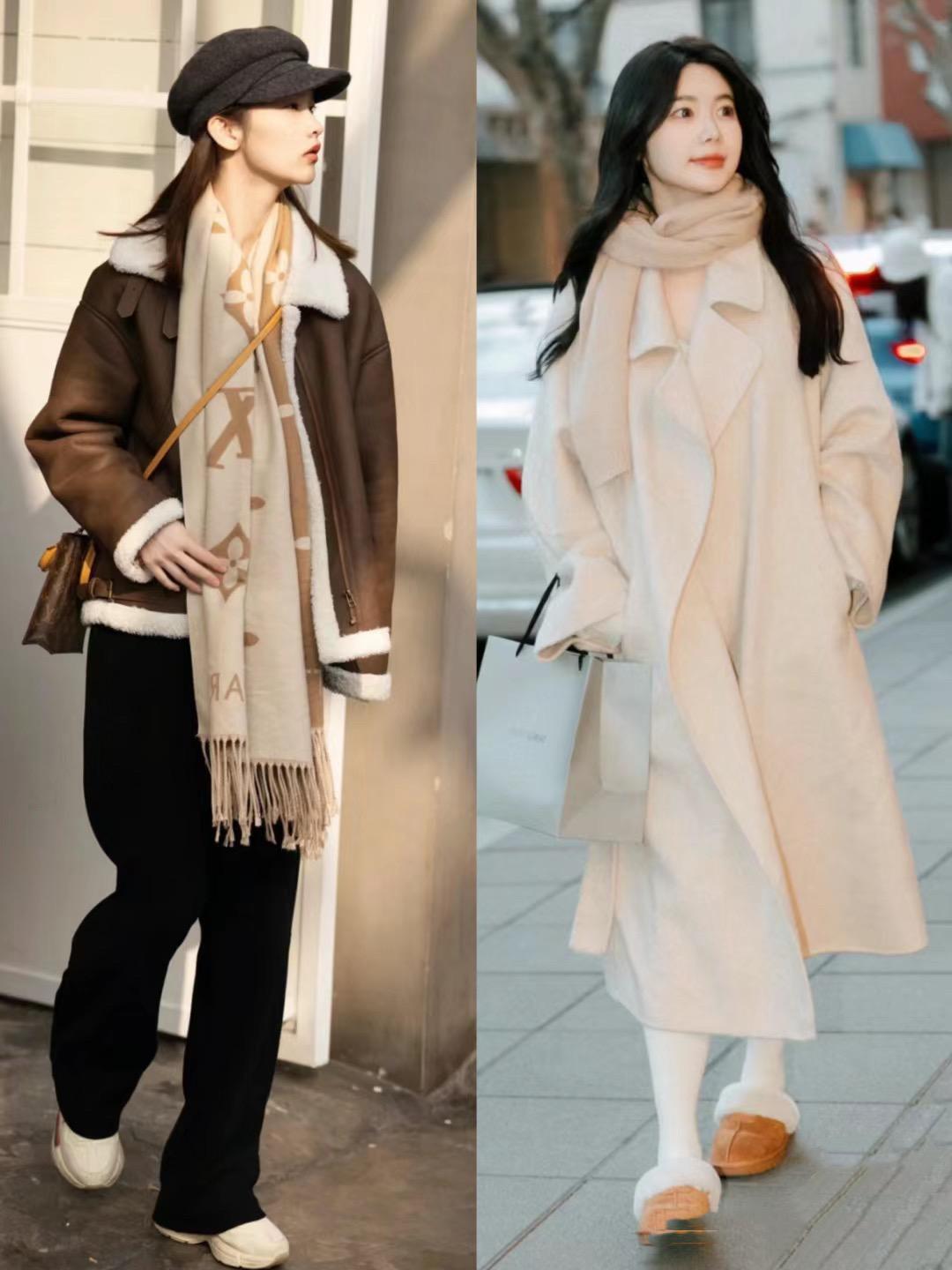 不管是格子圍巾、還是印花圍巾,都可以分割頭頸部的線條,讓頭身比更完美。穿一件黑色大衣,搭一條羊絨圍巾,不僅更加保暖、還可以修飾比例、提升冬季時尚氛圍。