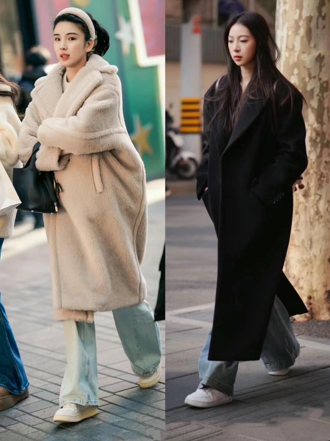 我們穿黑色對呀,或者羊羔絨大衣,都可以配一條直筒牛仔褲,搭一雙白色板鞋。直筒牛仔褲+板鞋,也是非常完美的拍檔。寒冷的冬天,這樣穿着也很減齡。