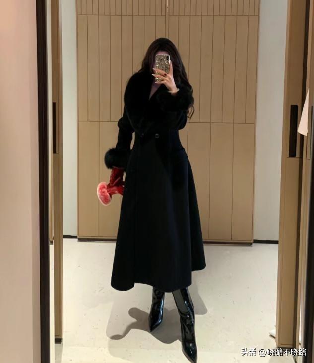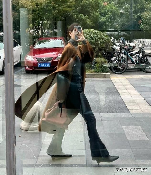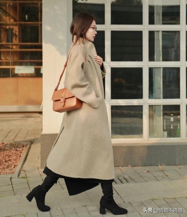 長款大衣匹配長靴的時候,身材的縱向比例是最不喫虧的,凡是那些個頭沒有超過160的女人,都可以嘗試這樣的穿法,尖嘴款式高跟靴盡展優勢,身形比例的拉長效果特別好,長大衣穿搭也不會顯得臃腫或者是累贅。