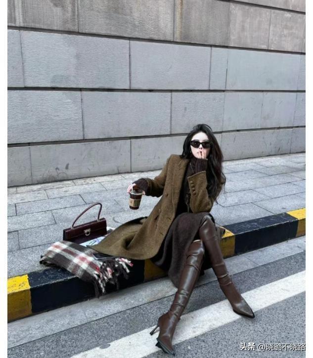 棕色靴子的復古感和優雅感獨一無二,特別適合一些輕熟風格的女性,精髓款型靴子匹配高跟,穿到40歲都完全不膩,尤其是適合那些長款過膝長度的外套,拉長身材比例的視覺效果很明顯。