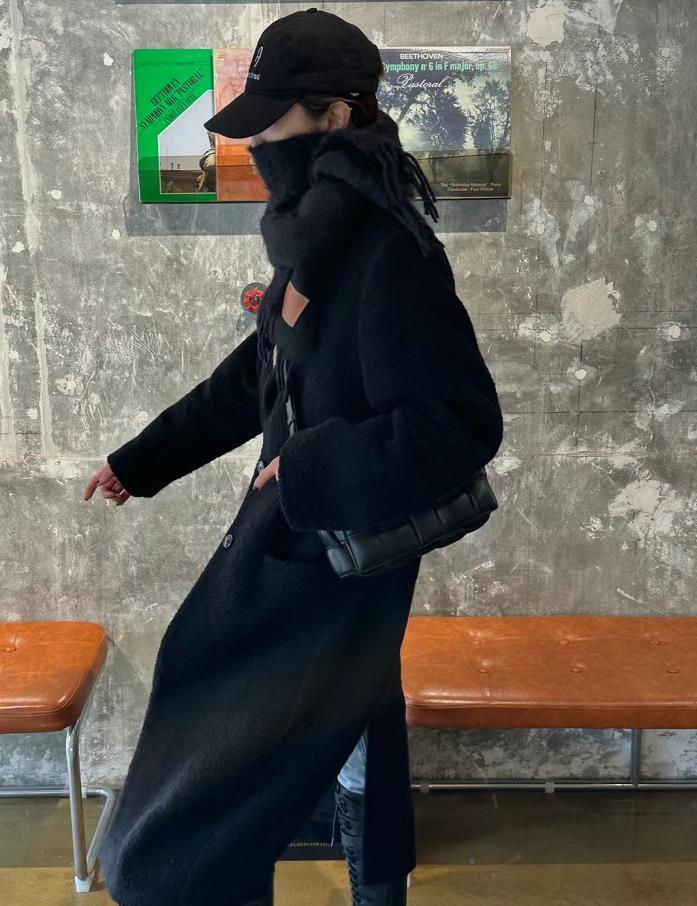 衣櫥裏必不可少的黑色大衣,每年的秋冬季節都應該入手一件的,選擇黑色圍巾相配,完全不覺得沉悶,反而有種很沉穩成熟的範。