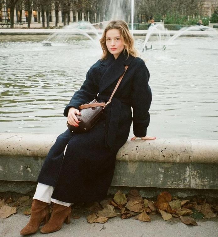 黑色大衣之所以看起來顯沉悶,無非就是顏色的問題,適當混搭一些彩色單品或配飾點綴,例如一個亮色的包包,就能讓你的穿搭看起來不那麼沉悶。