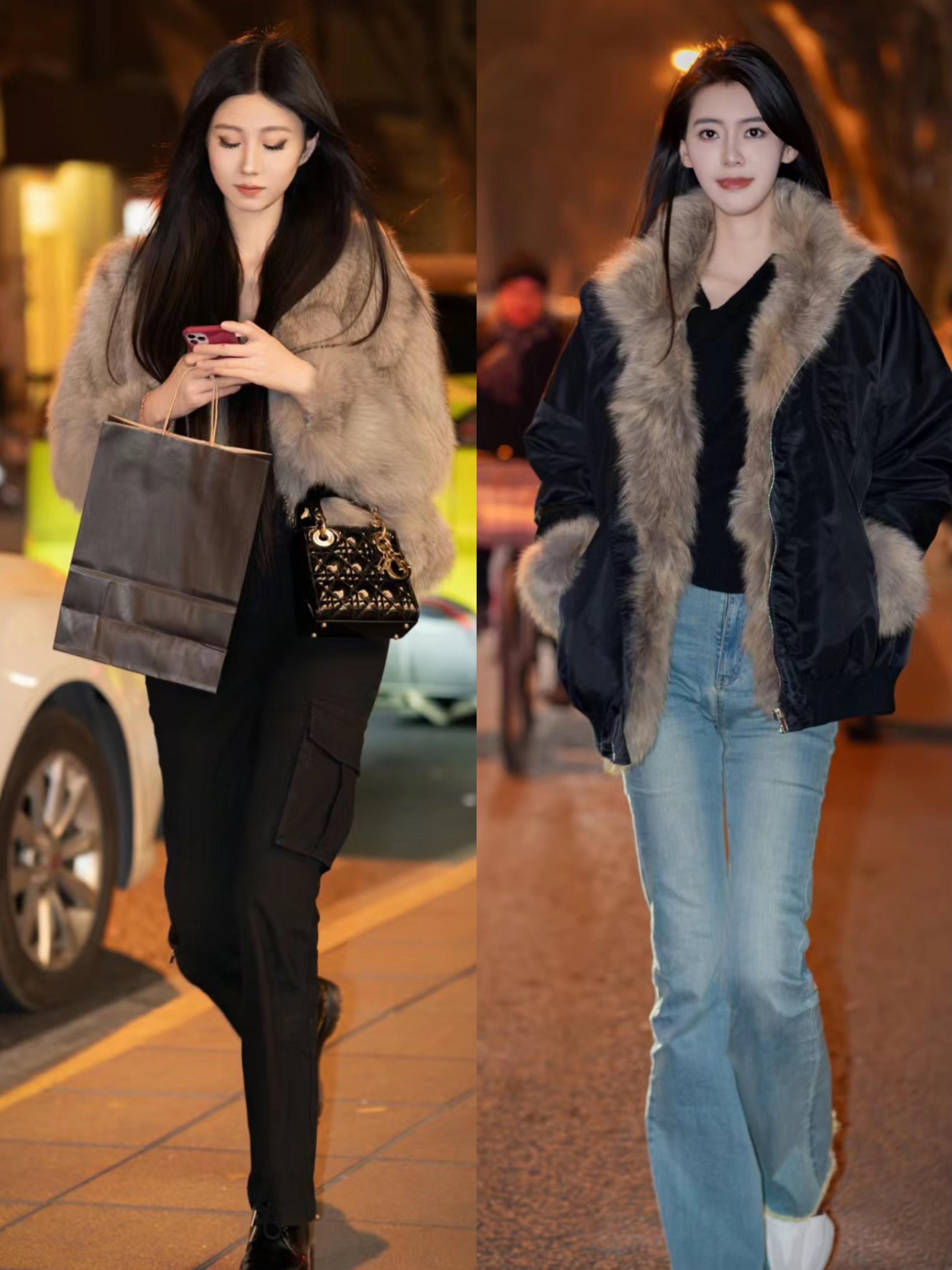 如果喜歡帥酷大方的穿衣方式,可以用奢華的皮草外套來搭配高腰的直筒牛仔褲。整體寬鬆的穿衣方式,對於大骨架、高個子的人羣也特別的友好。