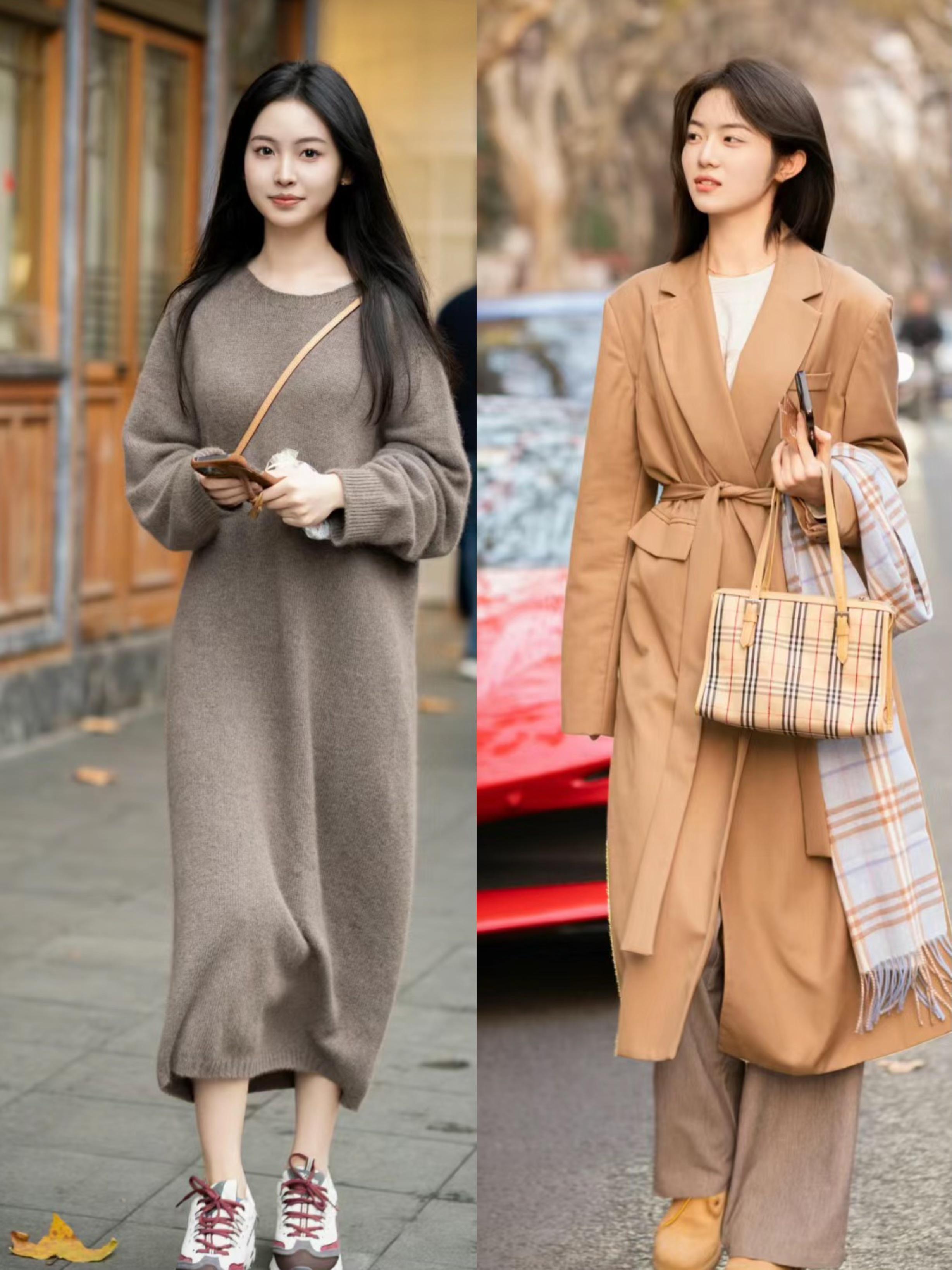 溫柔又知性的女人,在上海街頭也能尋找到適合自己的穿衣思路。一件棕色系的針織連衣裙,穿起來溫柔又大方,配厚底的運動鞋也是超時髦。