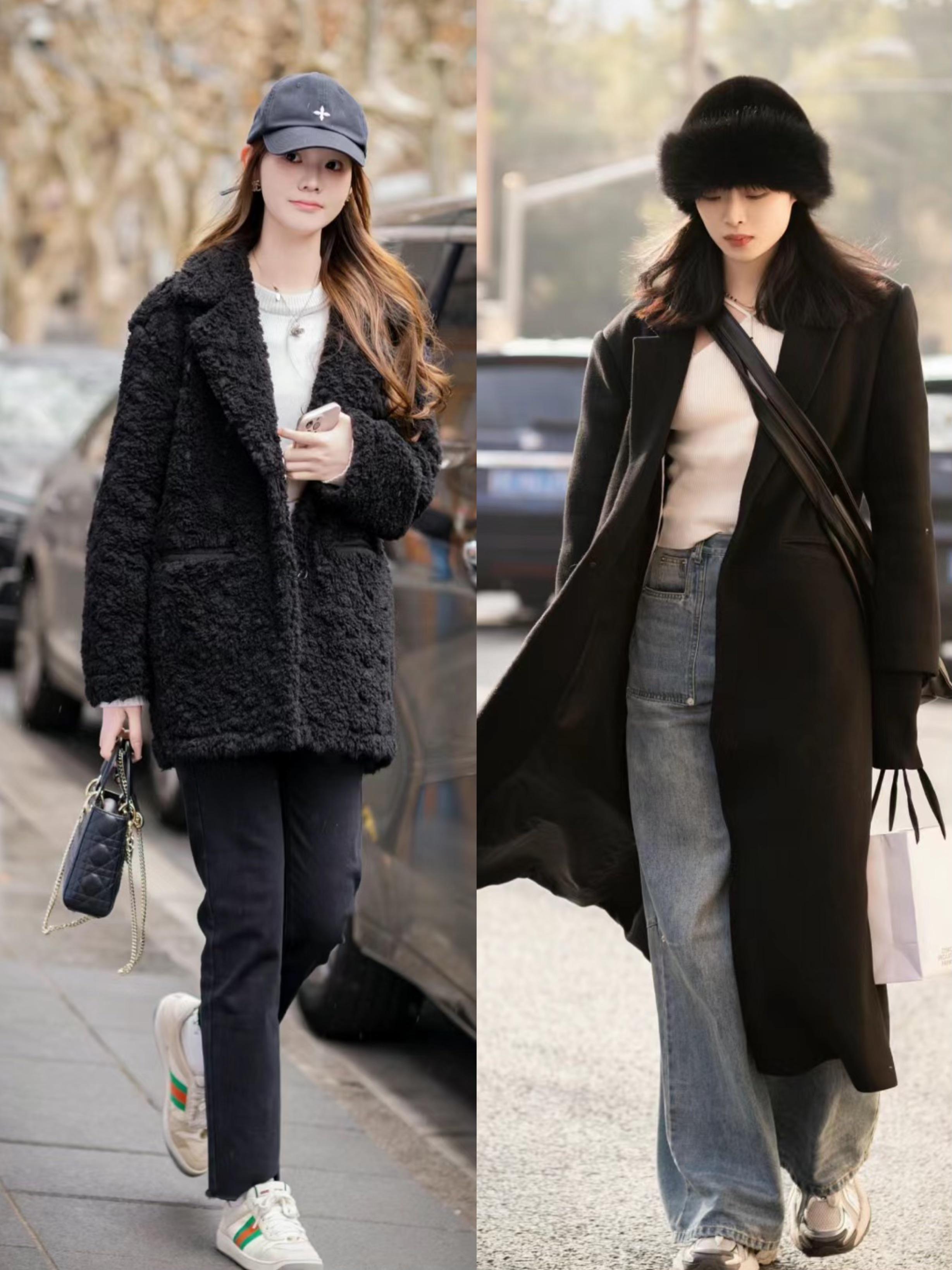 經典的黑色系,真的是高級又提氣場呀。一身黑色系的造型,穿起來時髦醒目又很顯白。除了黑色系的外套,我們還可以選擇經典的黑色大衣來穿着。