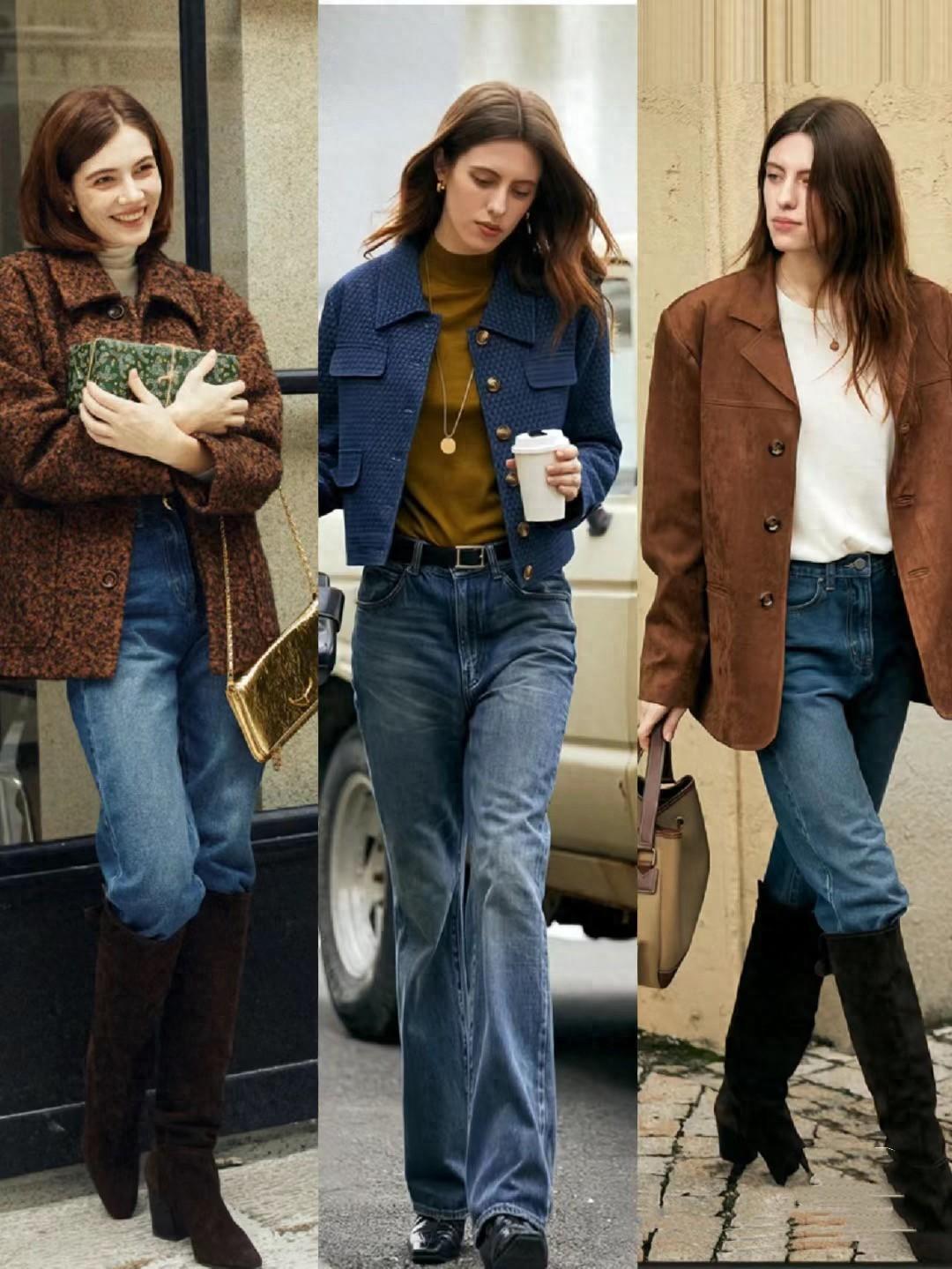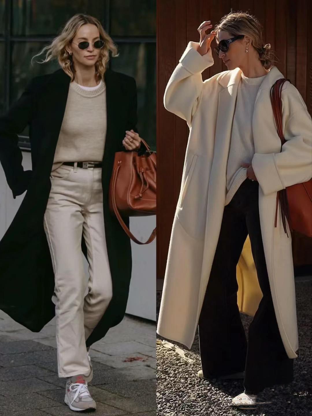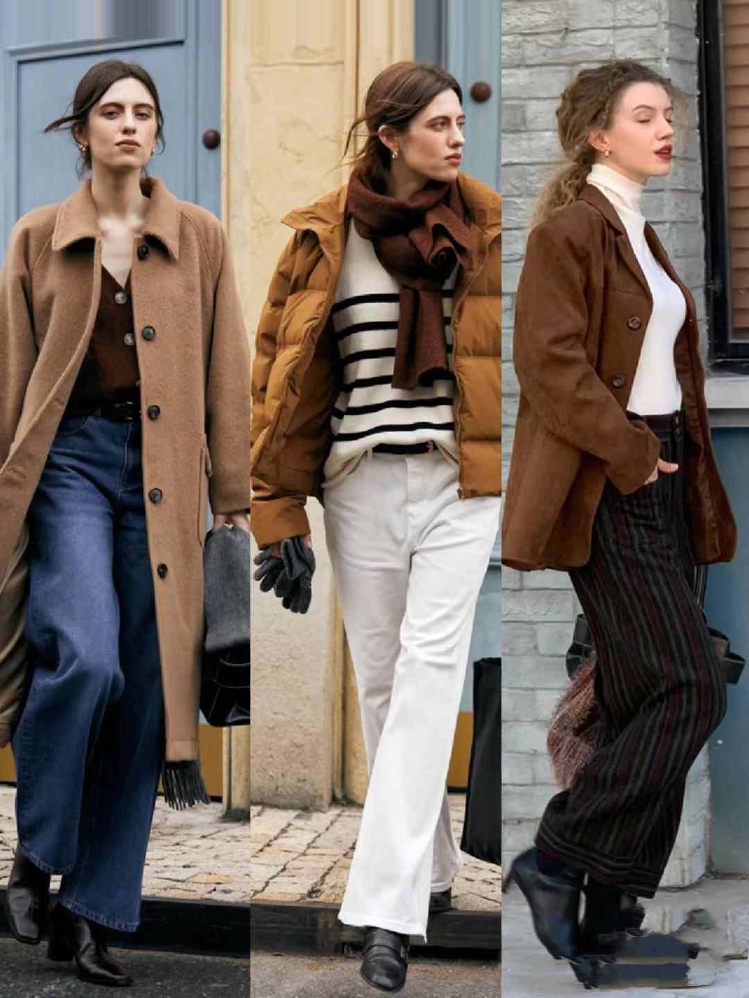 用棕色系的毛呢大衣來搭配直筒的牛仔褲,可以顯得雙腿線條更加纖細筆直。直筒牛仔褲,稍微細窄的褲筒穿起來很利落。棕色系的大挎包、也是提升氛圍感的關鍵。