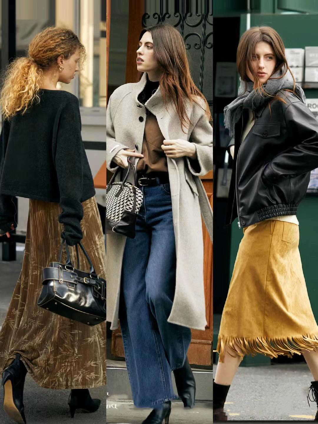 設計簡約卻更具質感的外套,一看就很顯貴。比如H型的毛呢大衣、夾克風的皮衣外套、絲絨面料的小香風外套,都是更具質感更加酷颯的單品。
