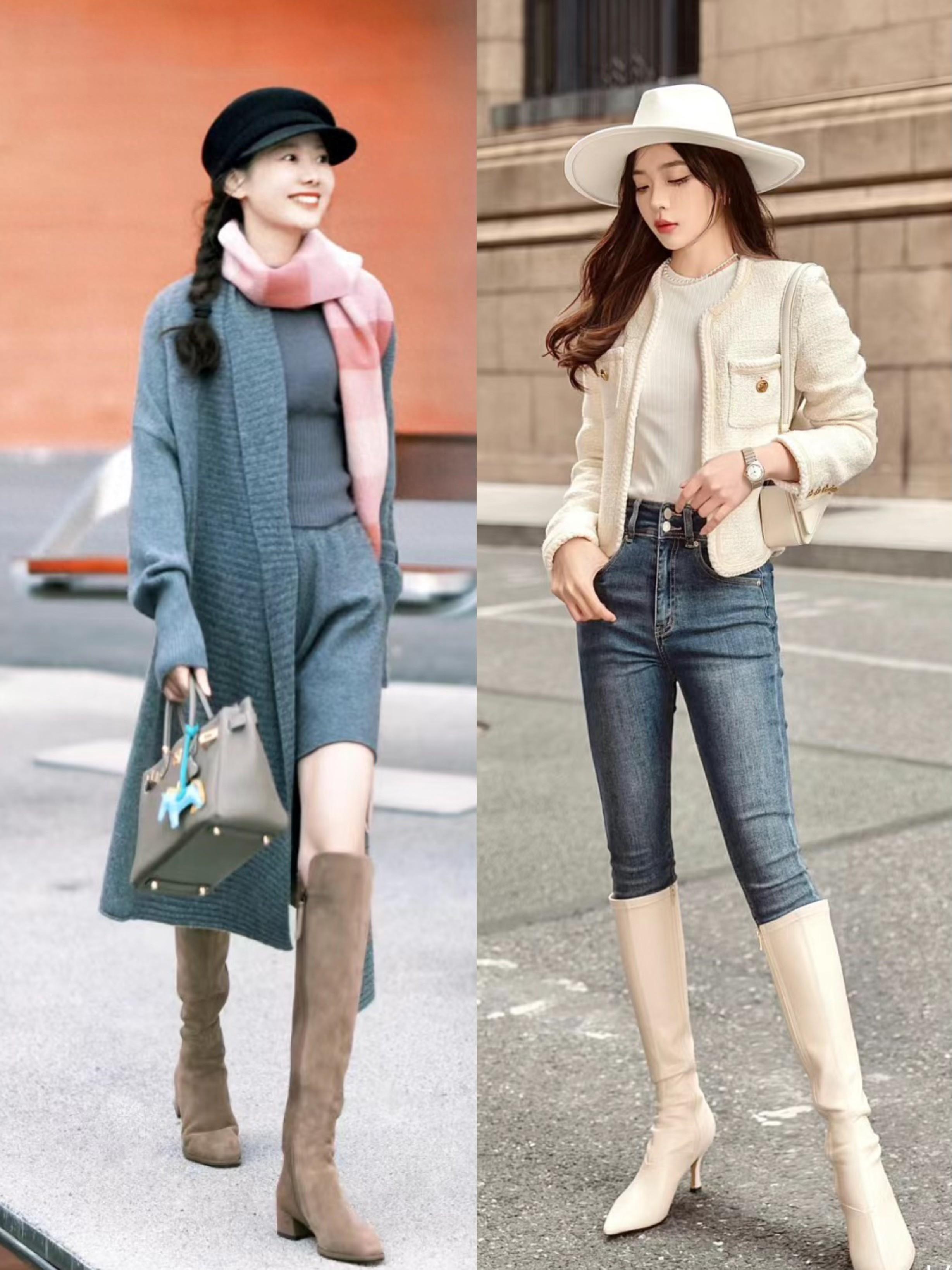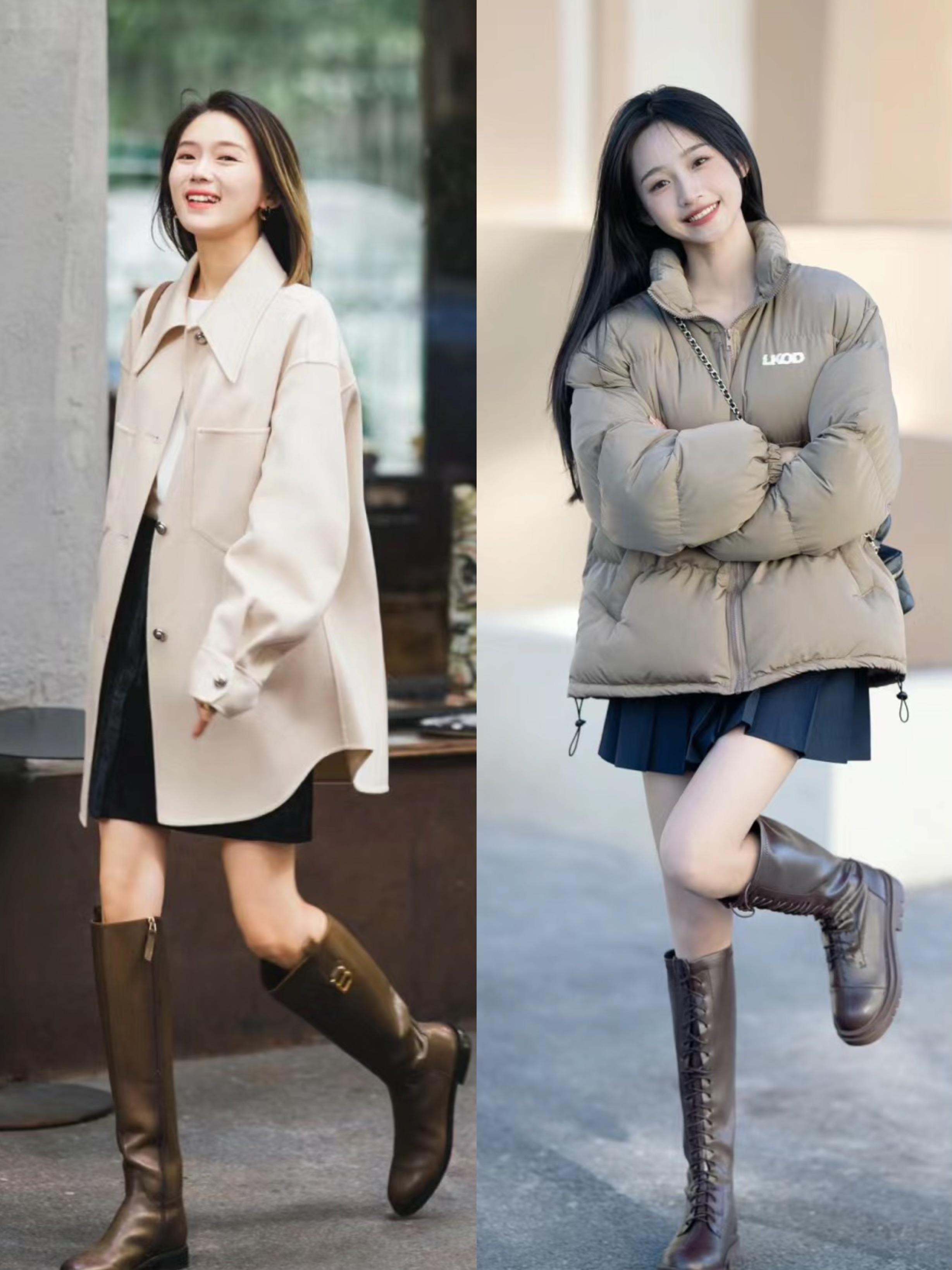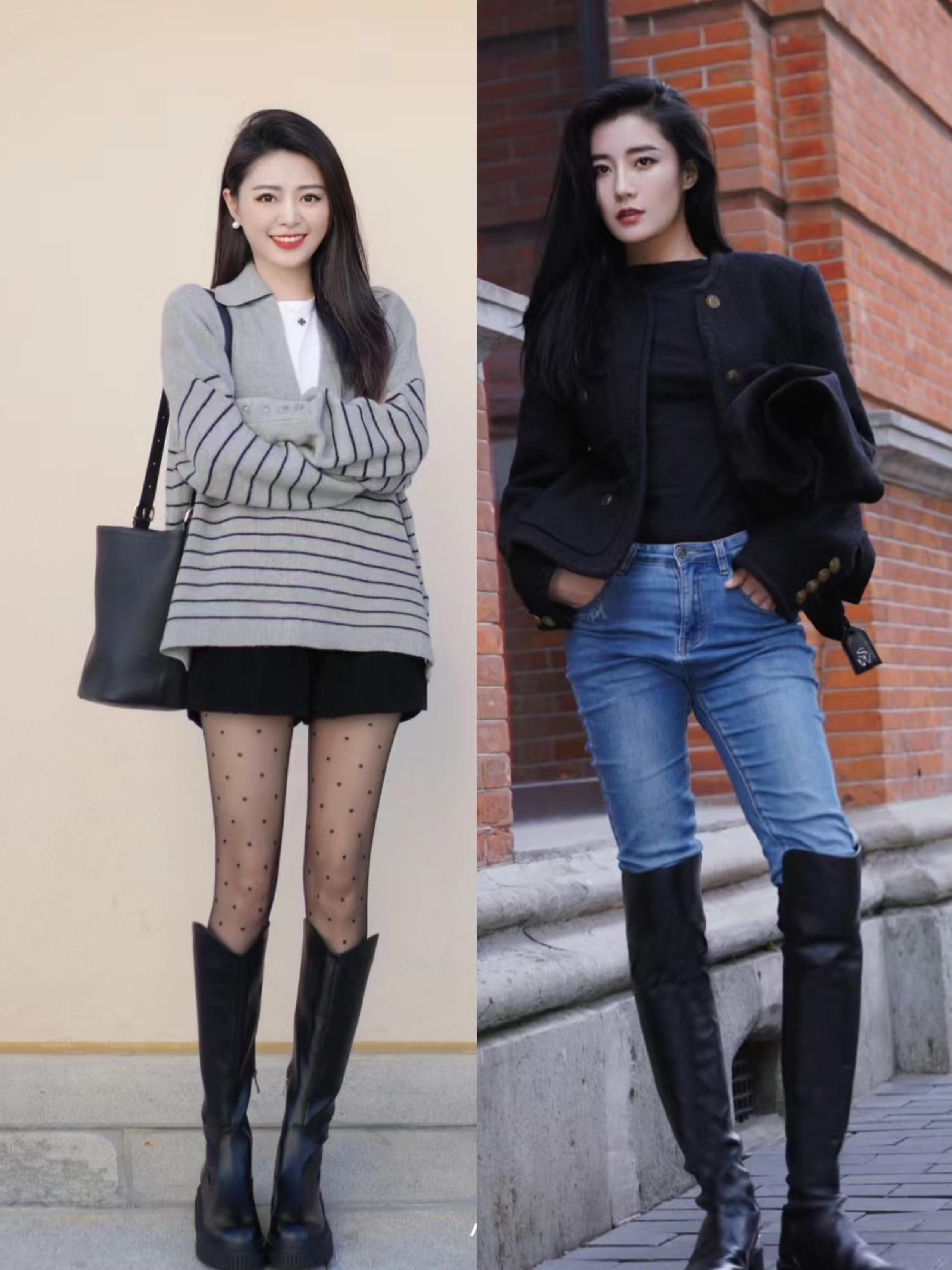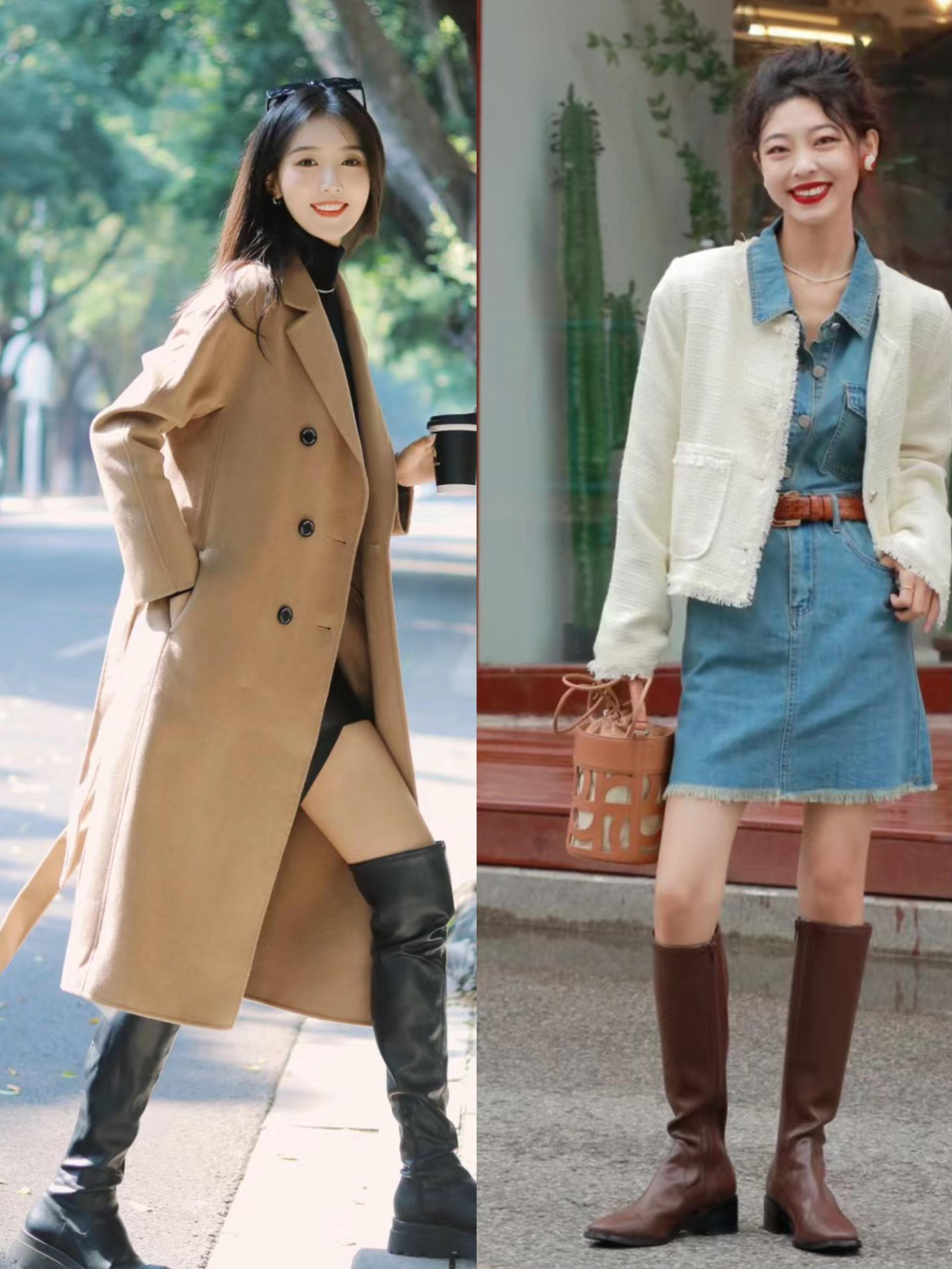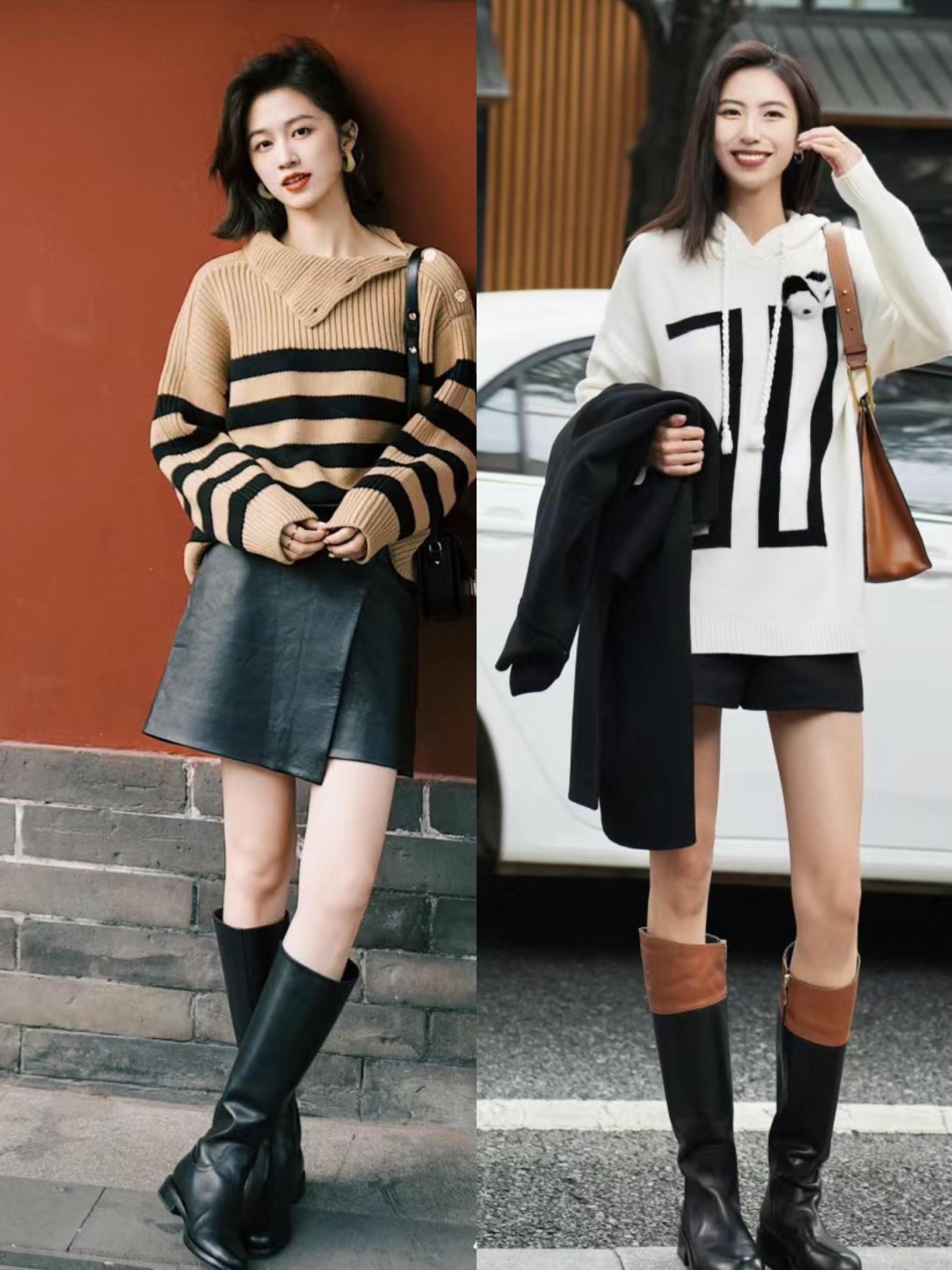 想要一種女性風格屬性更加明顯的穿搭,還是推薦大家選擇長筒靴+裙子的組合呀。一雙帥酷又顯瘦的長筒靴,搭配裙裝穿着激發出女性魅力。