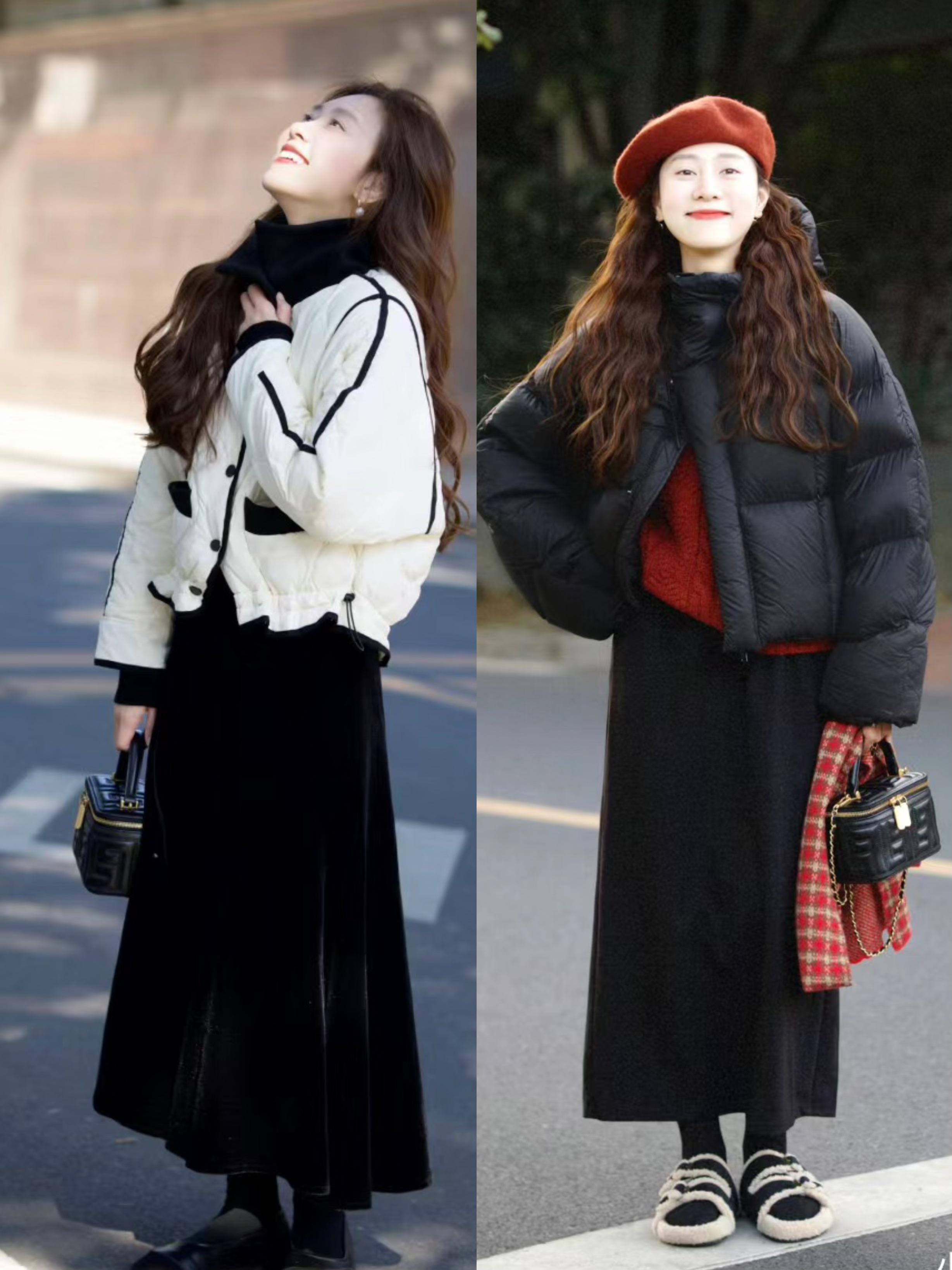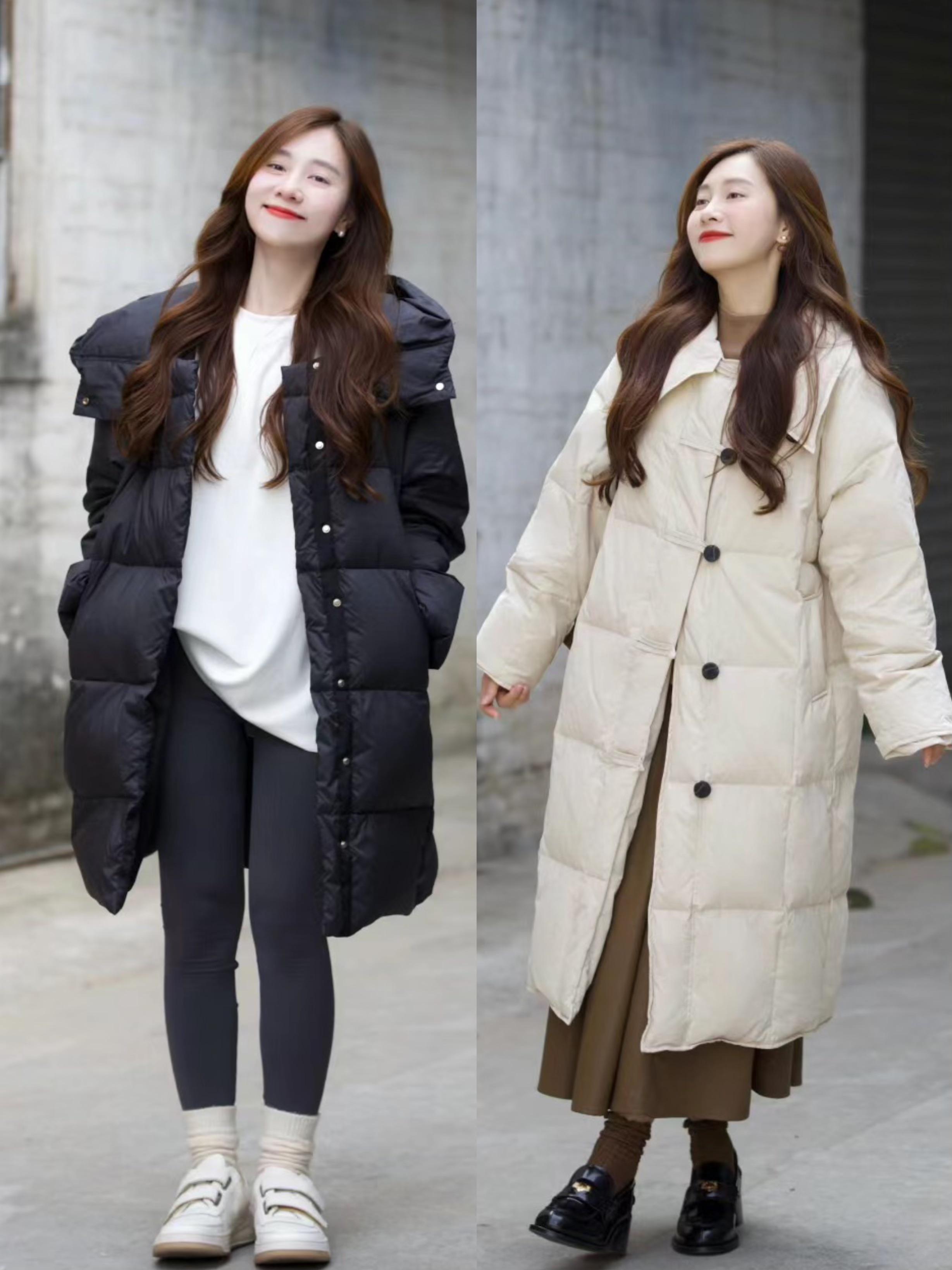 小個子的穿搭不需要那麼厚重,太厚重的穿衣風格不僅臃腫還容易顯得邋遢。我們可以選擇用保暖性更強的長款羽絨服,配上修身的黑色鯊魚褲,緊身的鯊魚褲穿起來顯瘦又體面。