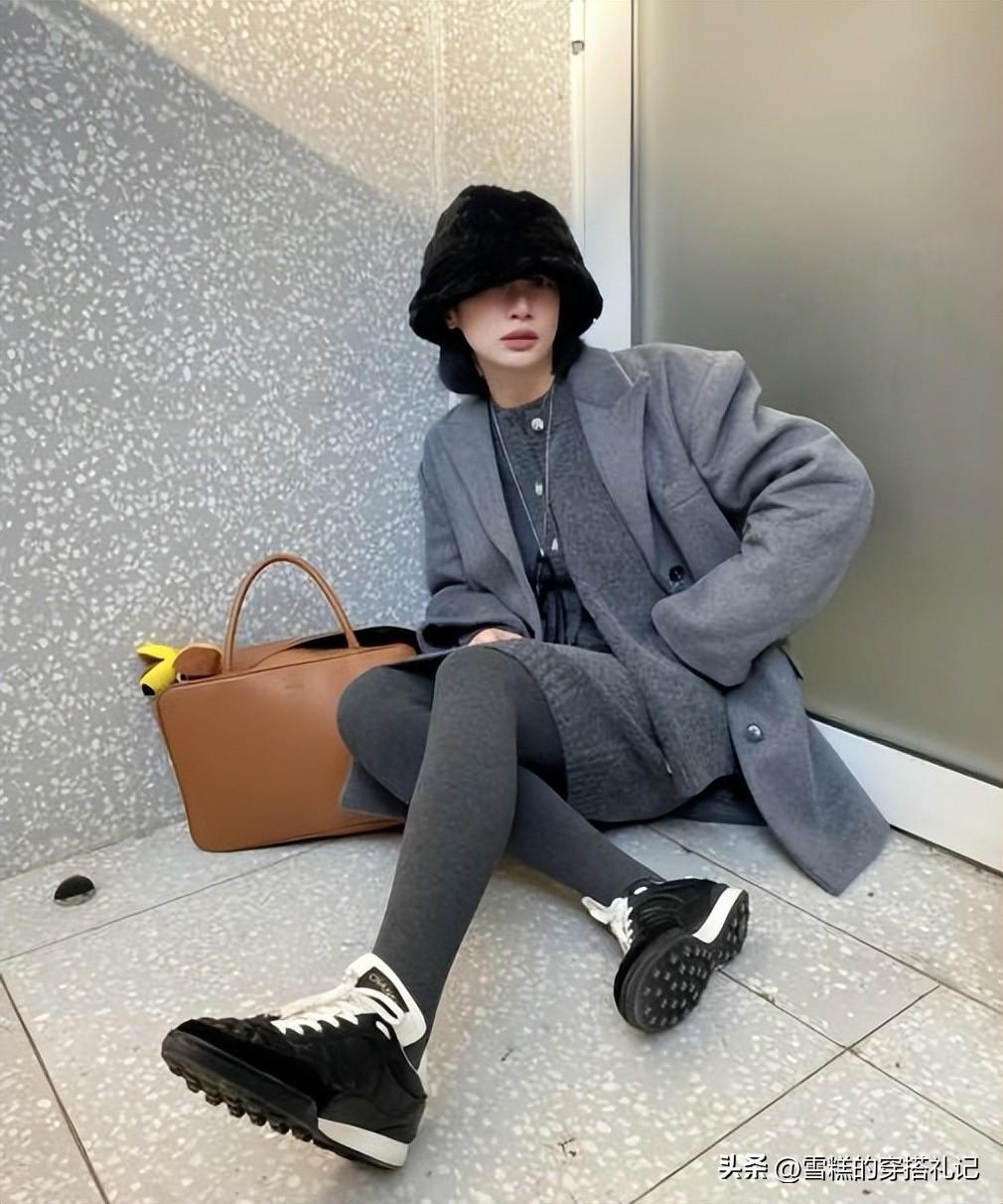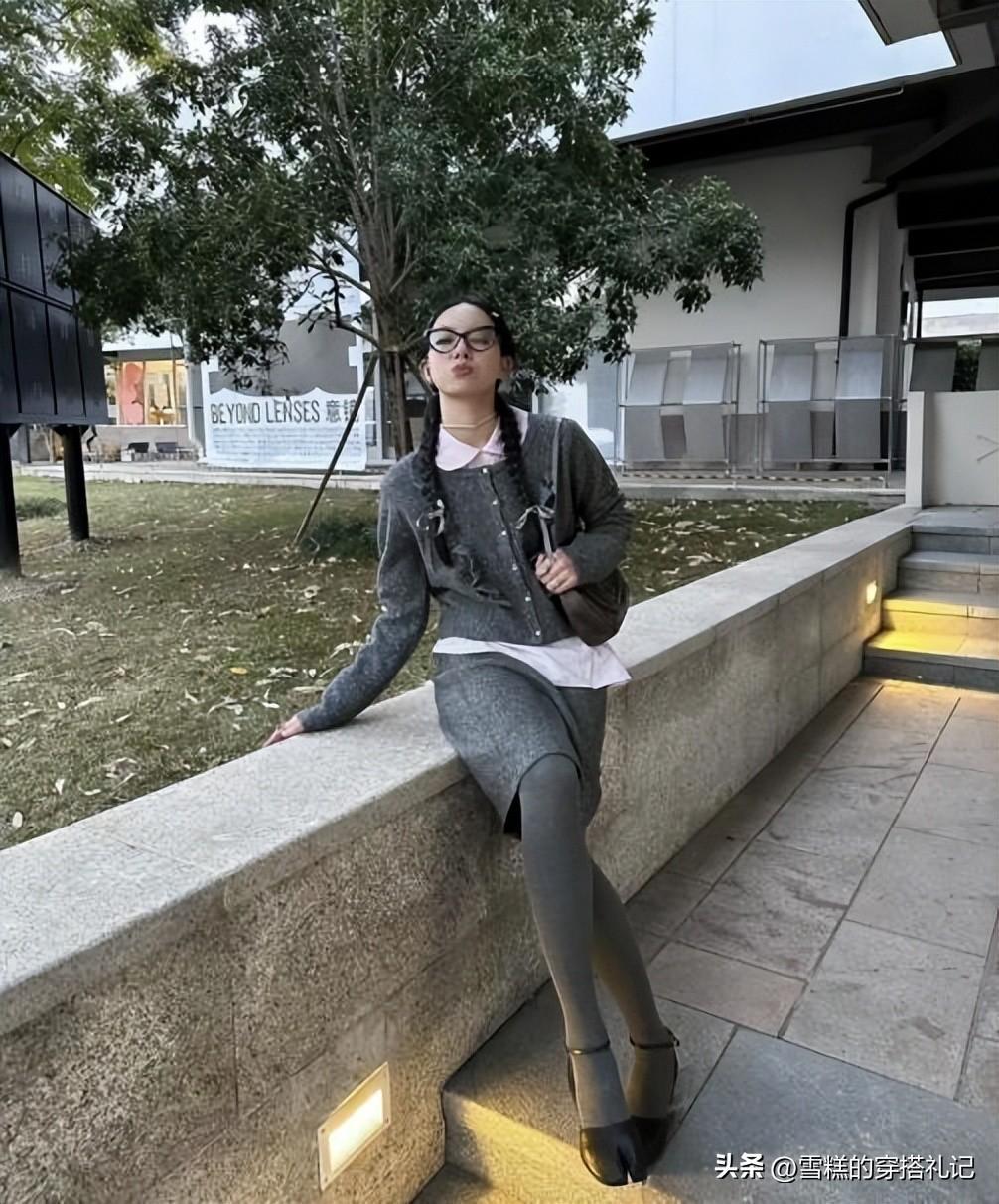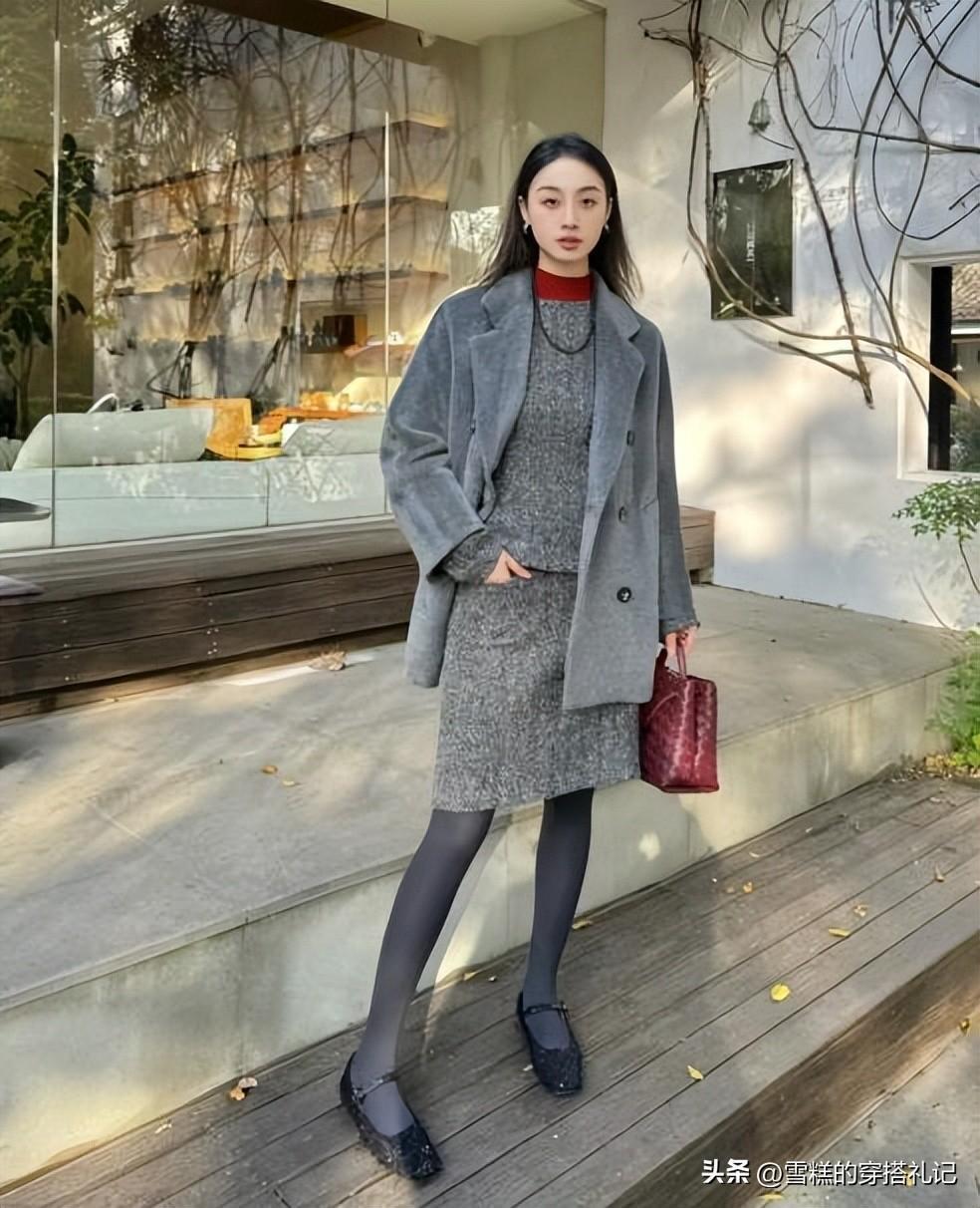 格雷系疊穿的主要在於內搭和外套的得穿,通過不同領型的單品疊穿出層次感,也通過不同的領型作視覺區分。還可以通過長襪+打底襪的方式進行疊穿,增加穿搭的俏皮感。