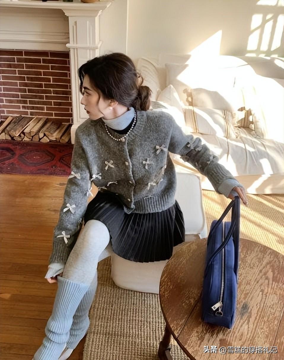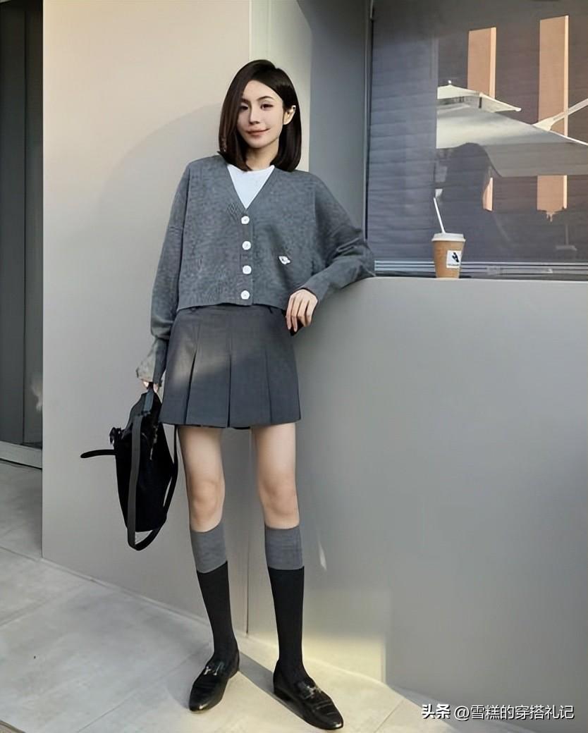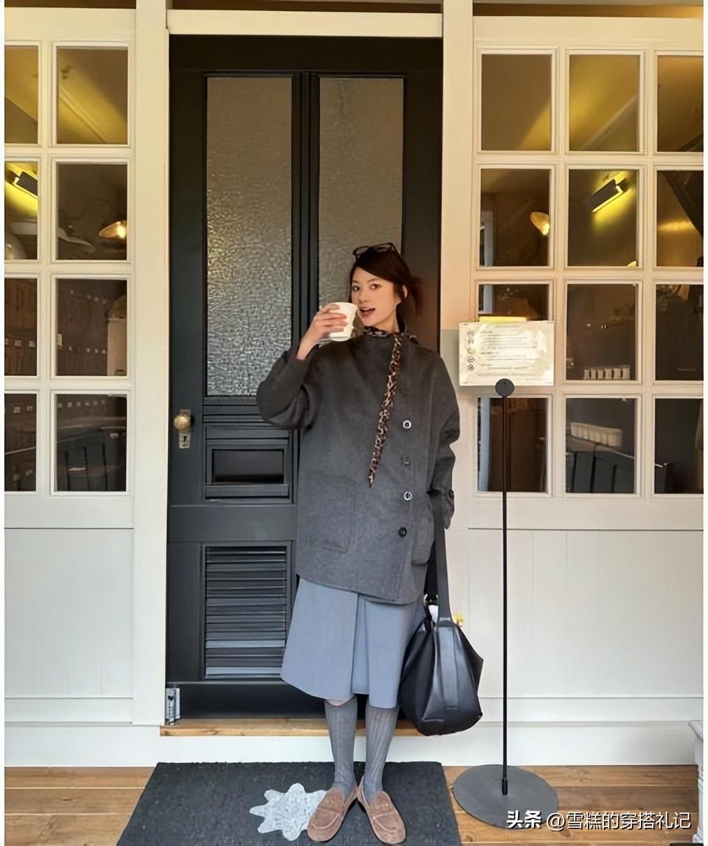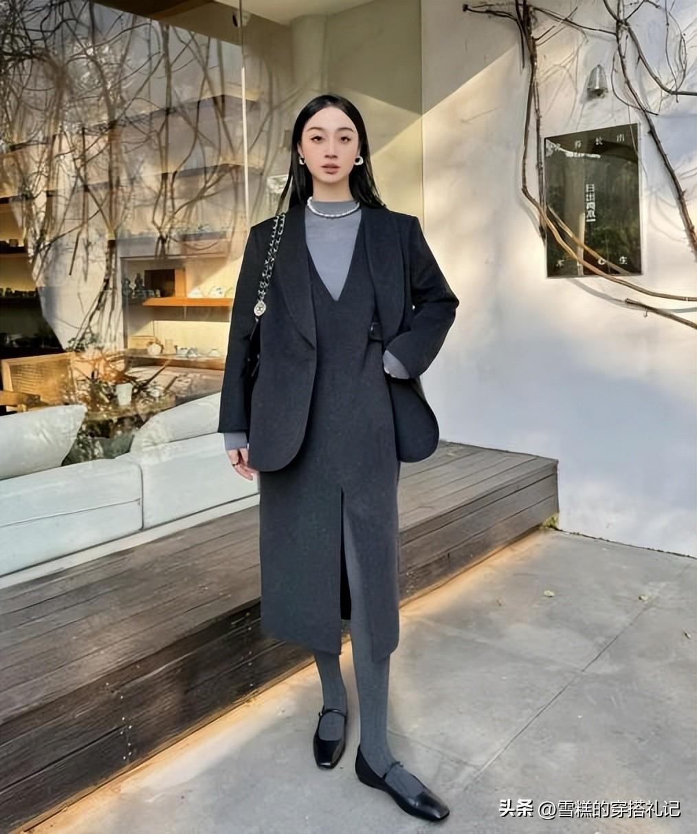 格雷系疊穿的主要在於內搭和外套的得穿,通過不同領型的單品疊穿出層次感,也通過不同的領型作視覺區分。還可以通過長襪+打底襪的方式進行疊穿,增加穿搭的俏皮感。
