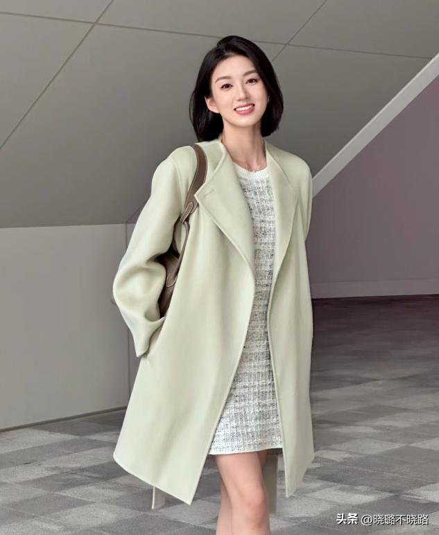 切記大衣與裙子不要齊平,否則分分鐘壓低個子,有着明顯的長度、高度差,才能夠更好的呈現纖細的個子,如果穿那種過膝的長款大衣,內搭蓋住二分之一大腿的超短裙會更加顯高,露腿的面積是完全足夠的,輕盈又顯高,如果裙襬更長,露出一截之後,整體看着更加輕盈一些。