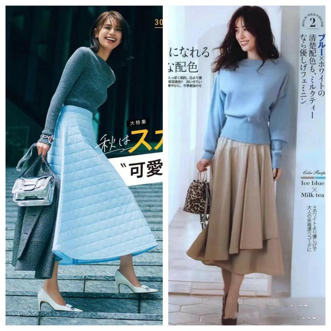 冰藍色的針織衫,或者短款的小外套,都是更加百搭的單品。冰藍色針織衫,不管是作爲內搭還是直接單穿,都更加溫柔減齡。