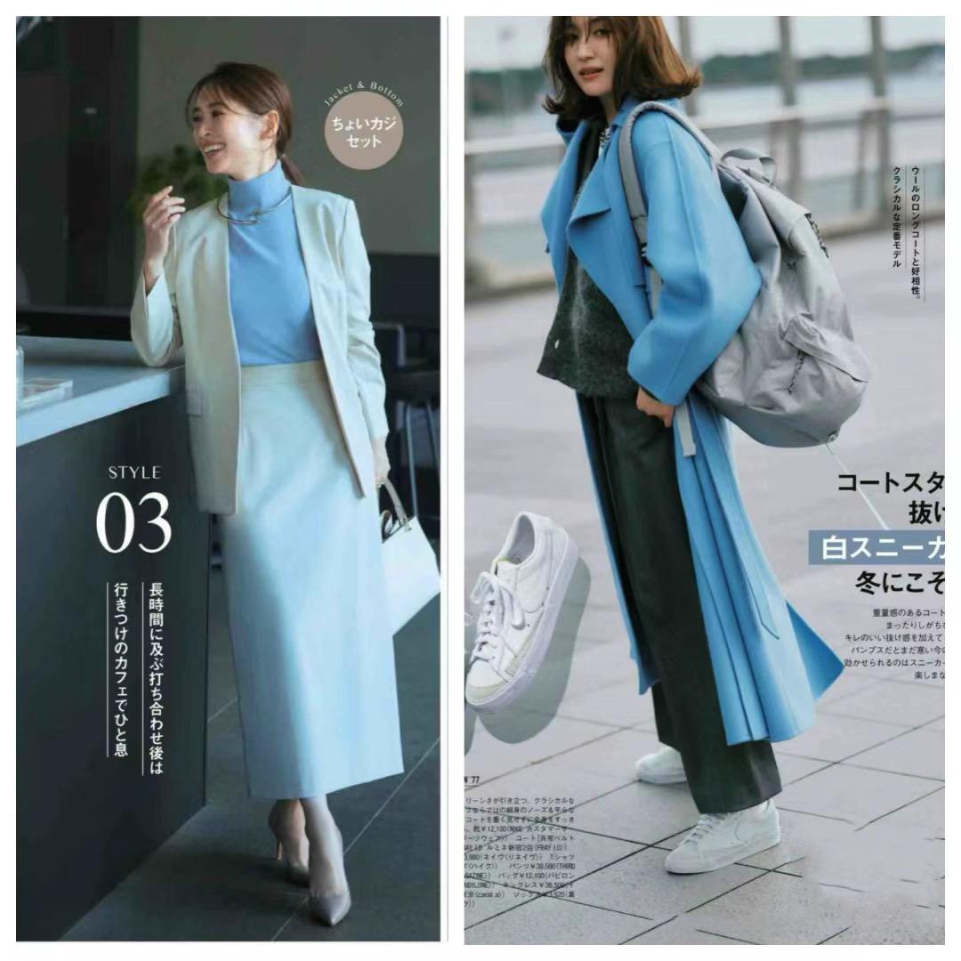 冰藍色打底衫,可以選擇一種半高領的款式,輕柔又保暖。我們配白色系的西服外套、半身裙來穿着,大方體面還減齡顯瘦。西服外套+半身裙的組合,更彰顯精緻美。