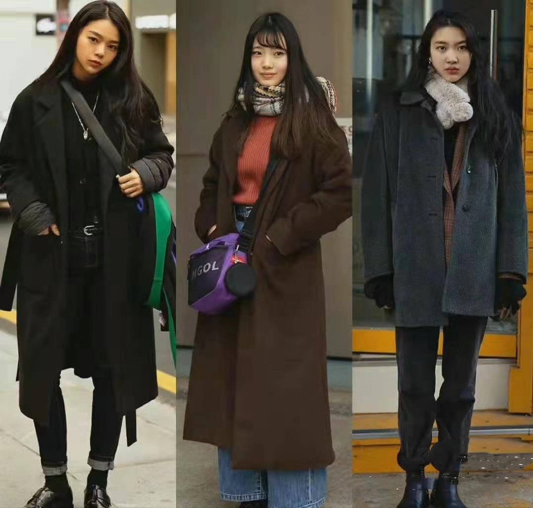 看韓系穿搭,有一種從容不迫的魅力。冬天裏的長款大衣,即便是厚重的款式、低亮度的深色系,在韓系小姐姐的搭配下也可以變得甜美洋氣。