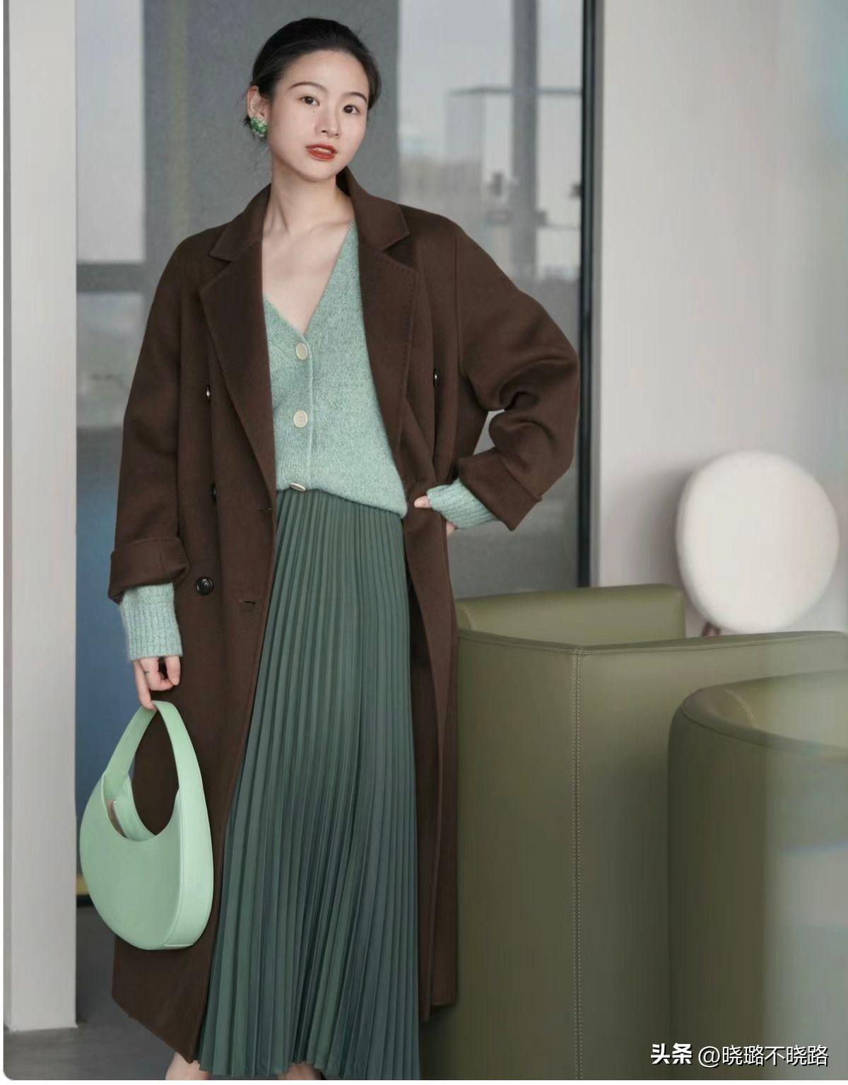 低飽和度低明度的大衣在進行搭配的時候也建議大家所選擇的搭檔可以襯托的經典,而且極具優雅高級感,同色系的襯托效果當中一定要營造深淺不一的對比感,以及材質也要有所區分要不然的話視覺上會有一定的黏糊感。