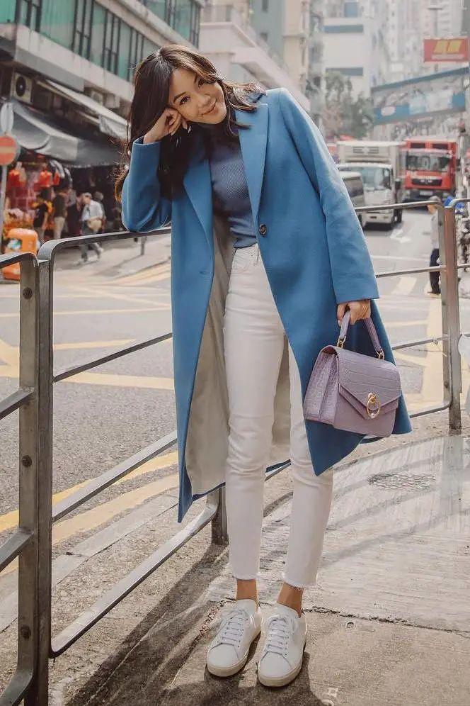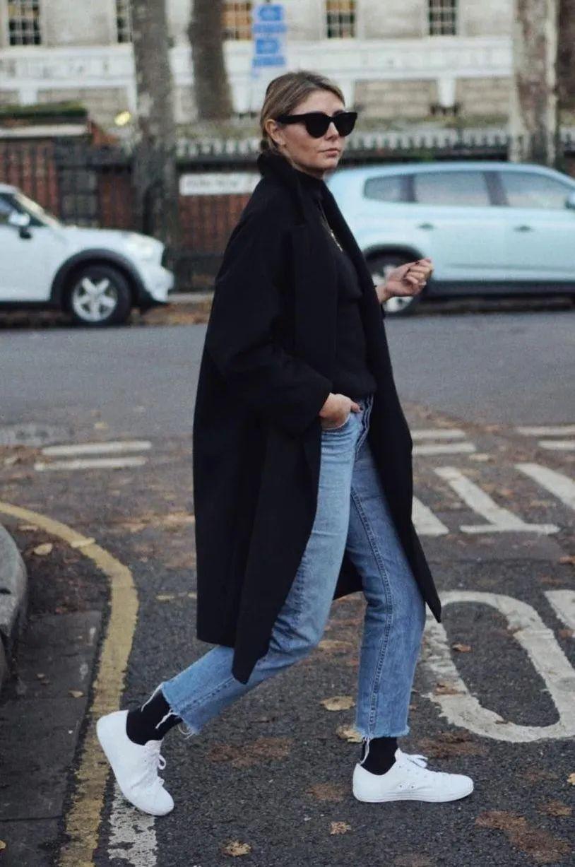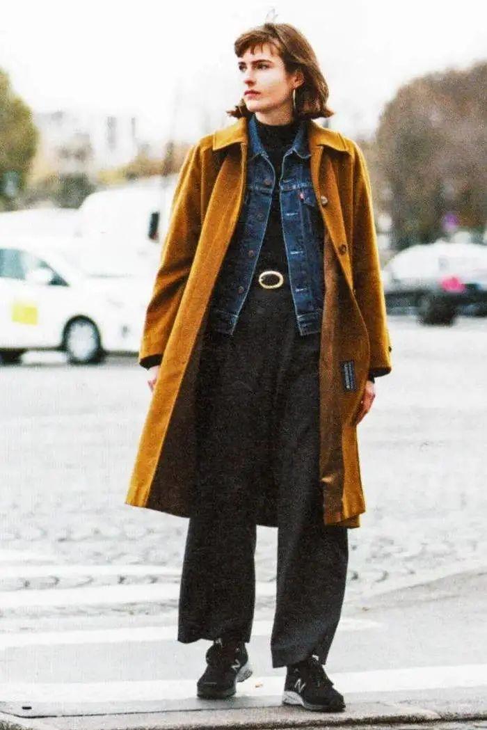 長大衣+運動鞋+牛仔褲,誰都可以駕馭的穿法。
