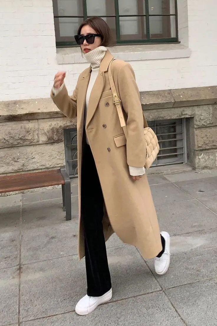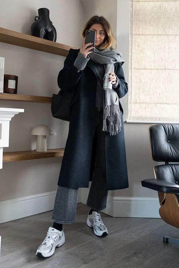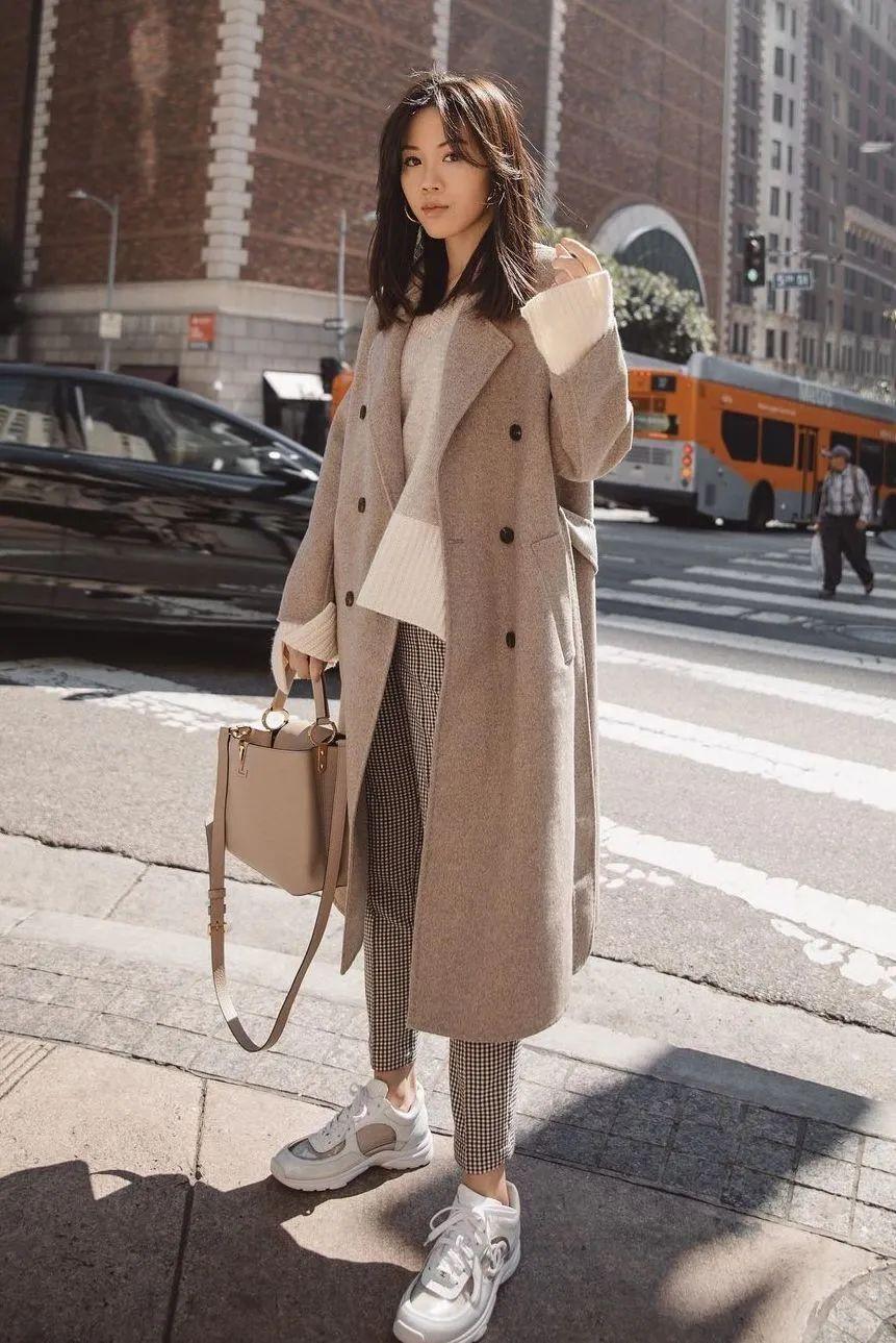 冬天長大衣配運動鞋,顯高又時髦!