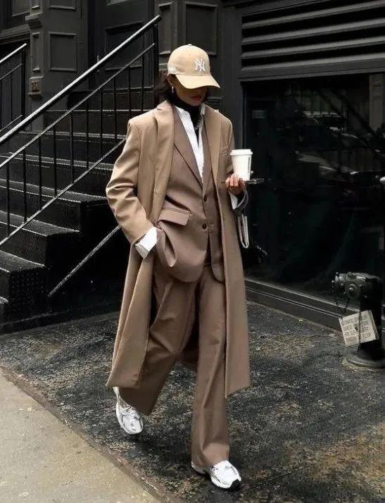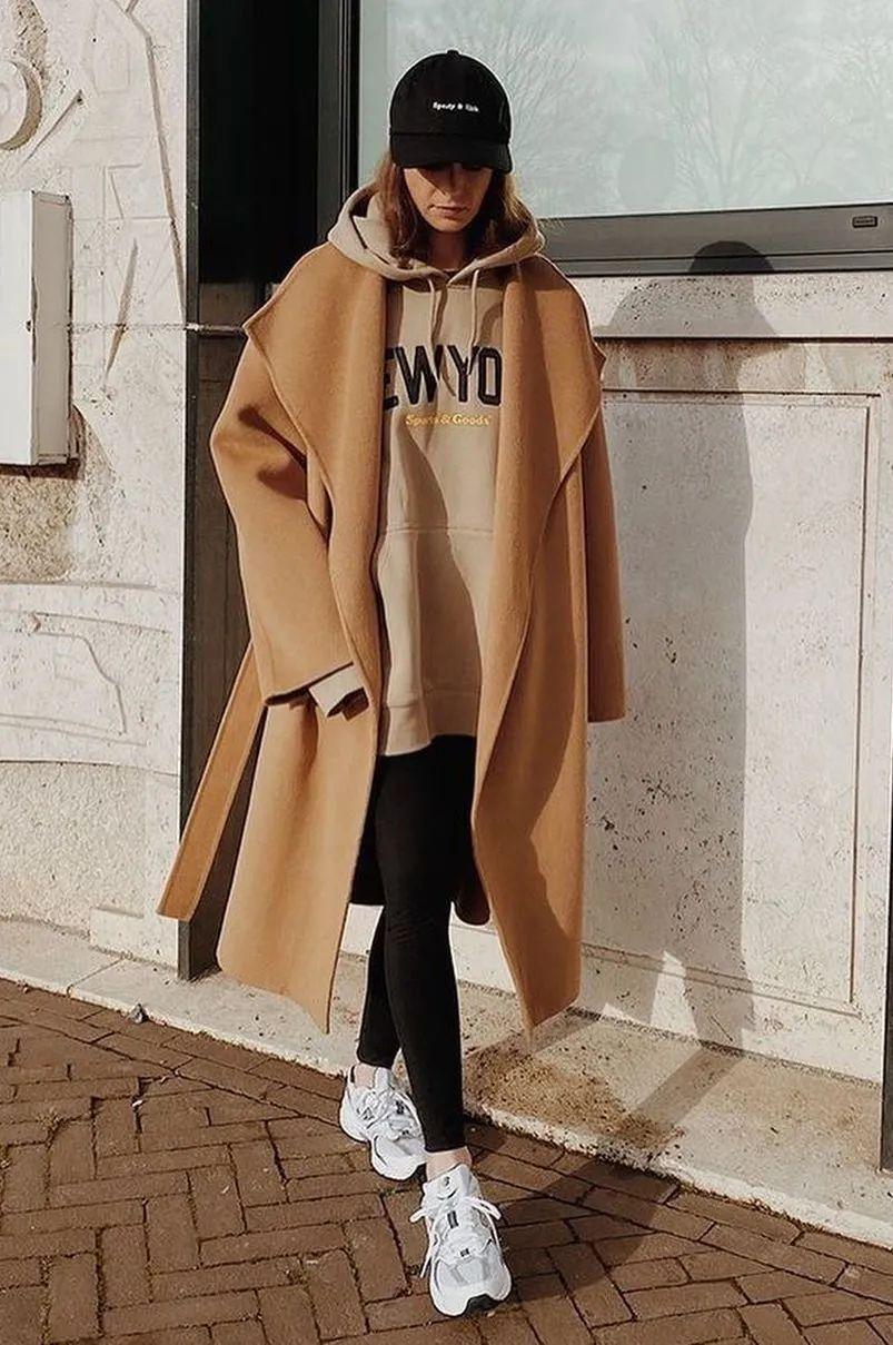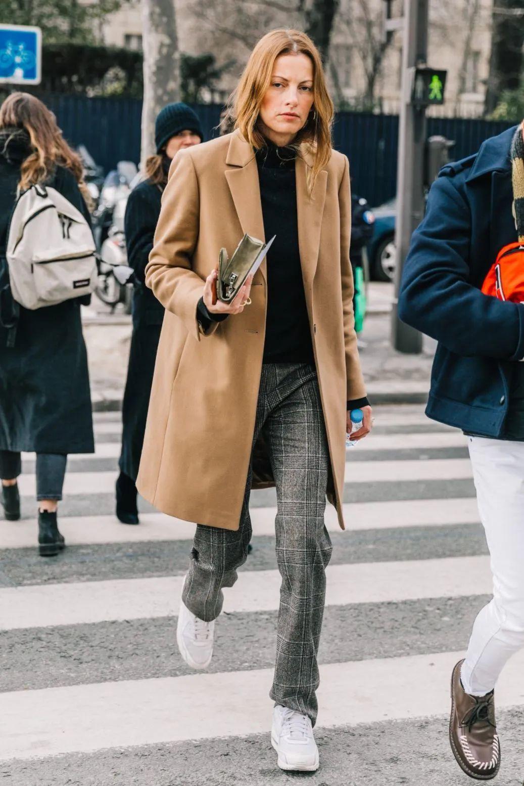 長大衣+運動鞋,不僅舒適度暴增,還能很好中和調大衣的輕熟感,讓你的穿搭時髦度飆升。