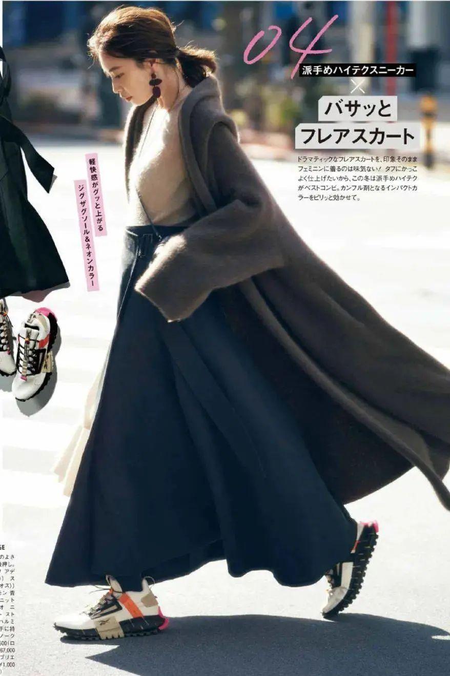 當然了,你也可以選擇一些飄逸別緻的裙子來爲你的大衣和運動鞋增添美感,就算在寡淡沉悶的冬季,也要穿得美美的。