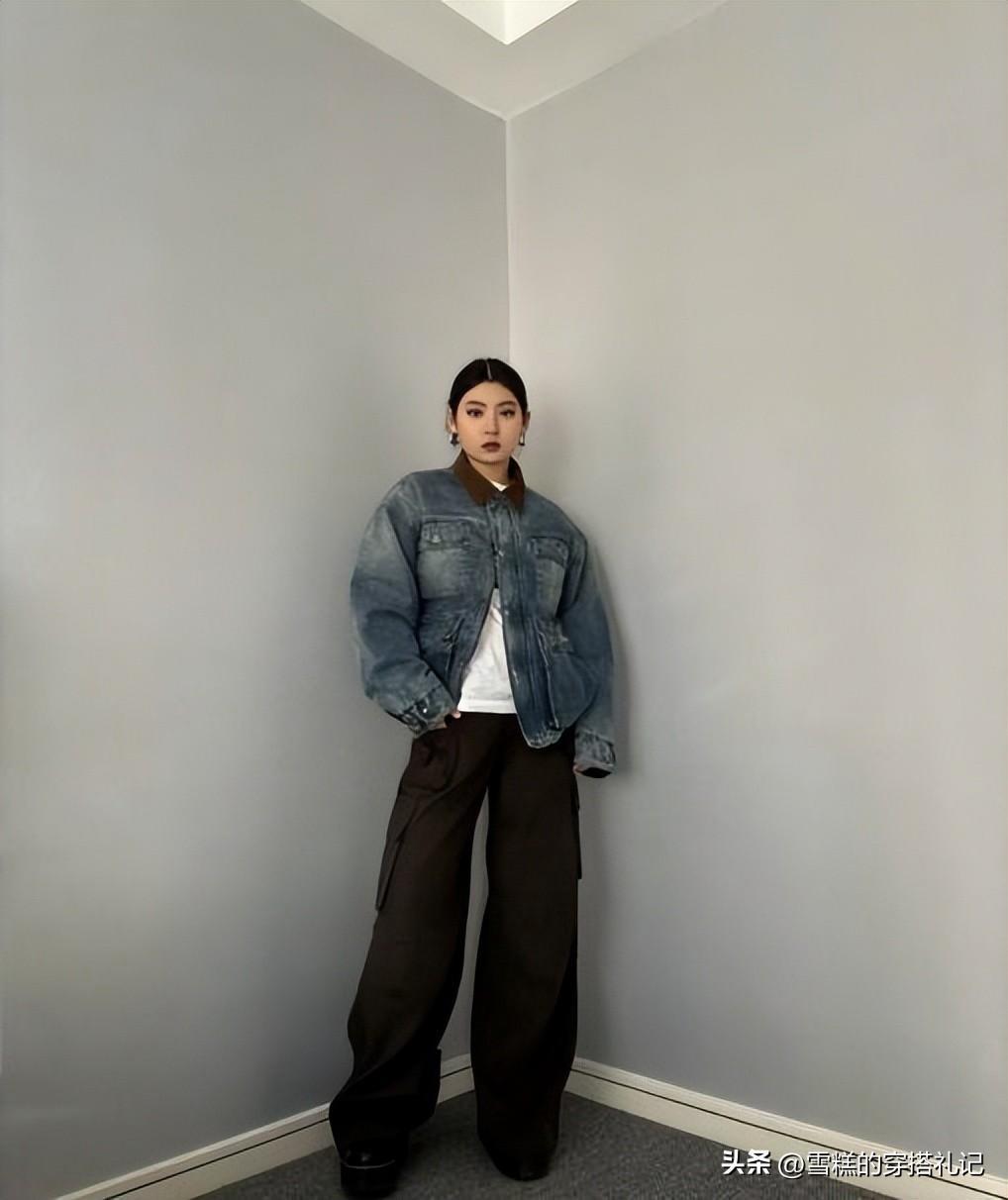 很多人穿牛仔的時候要麼喜歡塑造成港風穿搭,要麼喜歡塑造成日系穿搭,而我還是建議大家搭配工裝褲,讓牛仔外套更加帥氣,走更加新潮的路線。