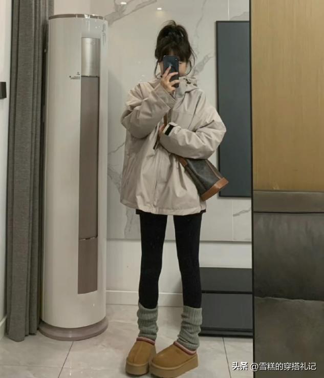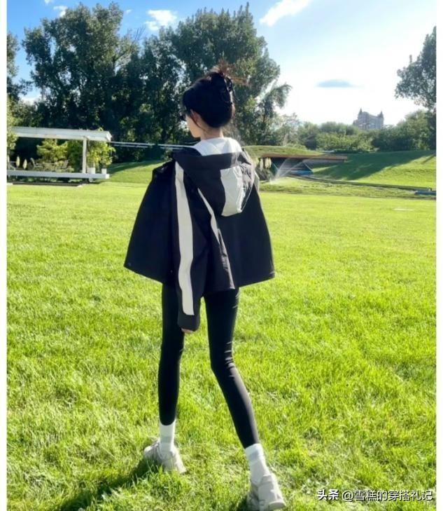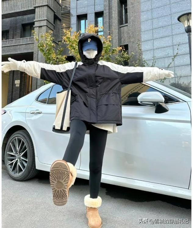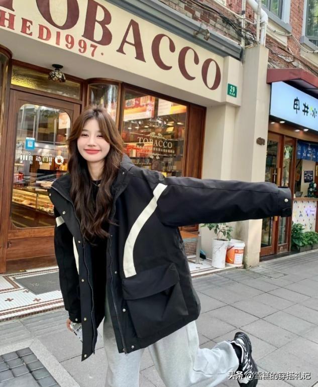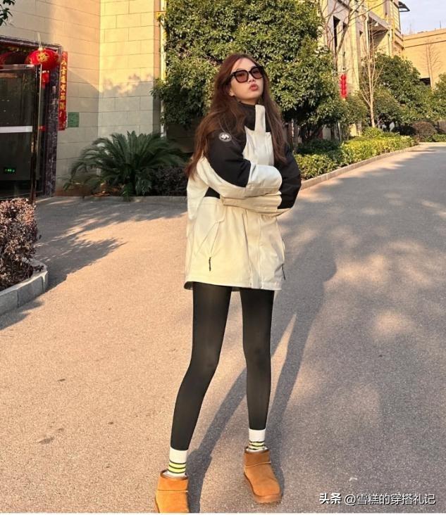 深色系的褲裝穿搭包容性是最強的,尤其是腿粗或者腿短的女生,可以很輕鬆的找尋到着裝的舒適度,羽絨衝鋒衣選擇偏寬偏大的版型也不累贅,這種類似於運動風格的上衣單品,可選擇合適配的褲子也很多,鯊魚褲和瑜伽褲是當下比較流行的鬆緊搭配款。
