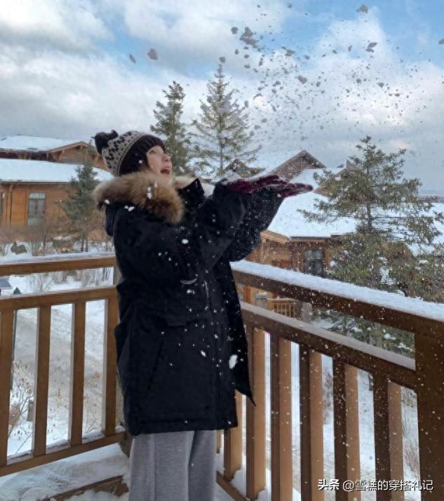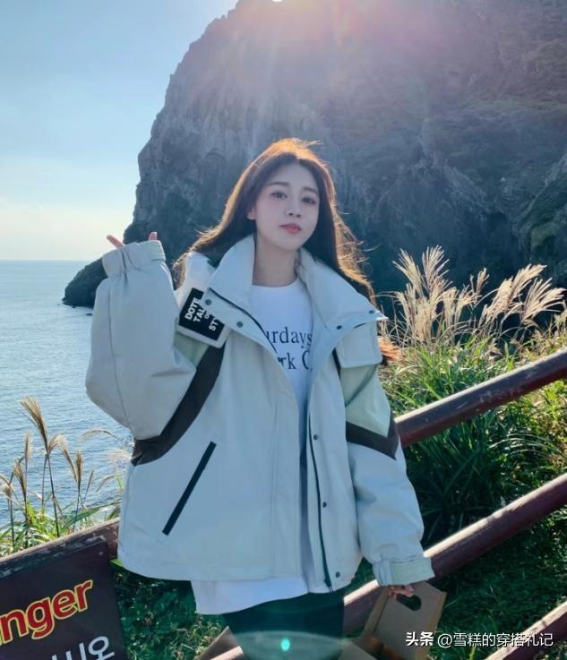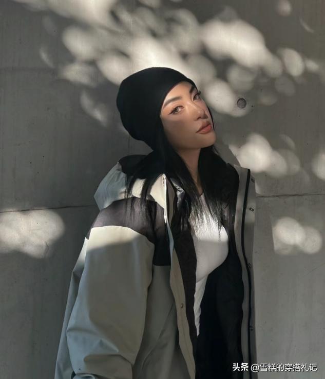 2.羽絨衝鋒衣領口要大,內穿小高領顯頭肩比例