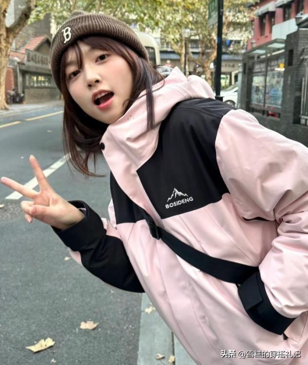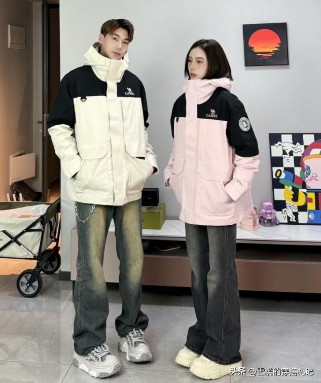 羽絨衝鋒衣的配色也是豐富多彩的,遠比我們羽絨服款式的挑選要更加豐富,米色和粉色系都屬於經典的淺色,在視覺上看起來超級嫩,也很適合皮膚偏白皙的女生,和對象組合情侶服也是很不錯的選擇。