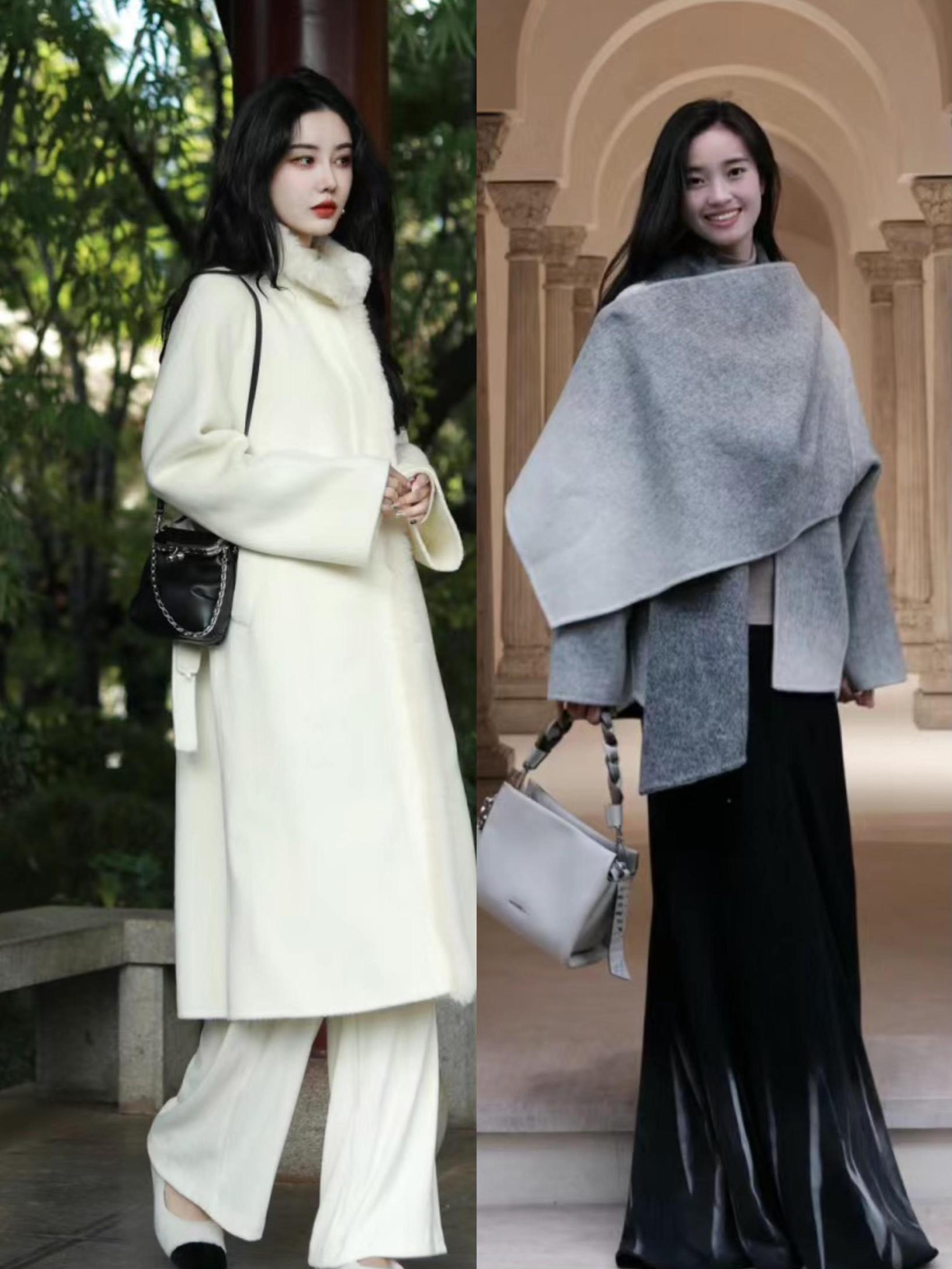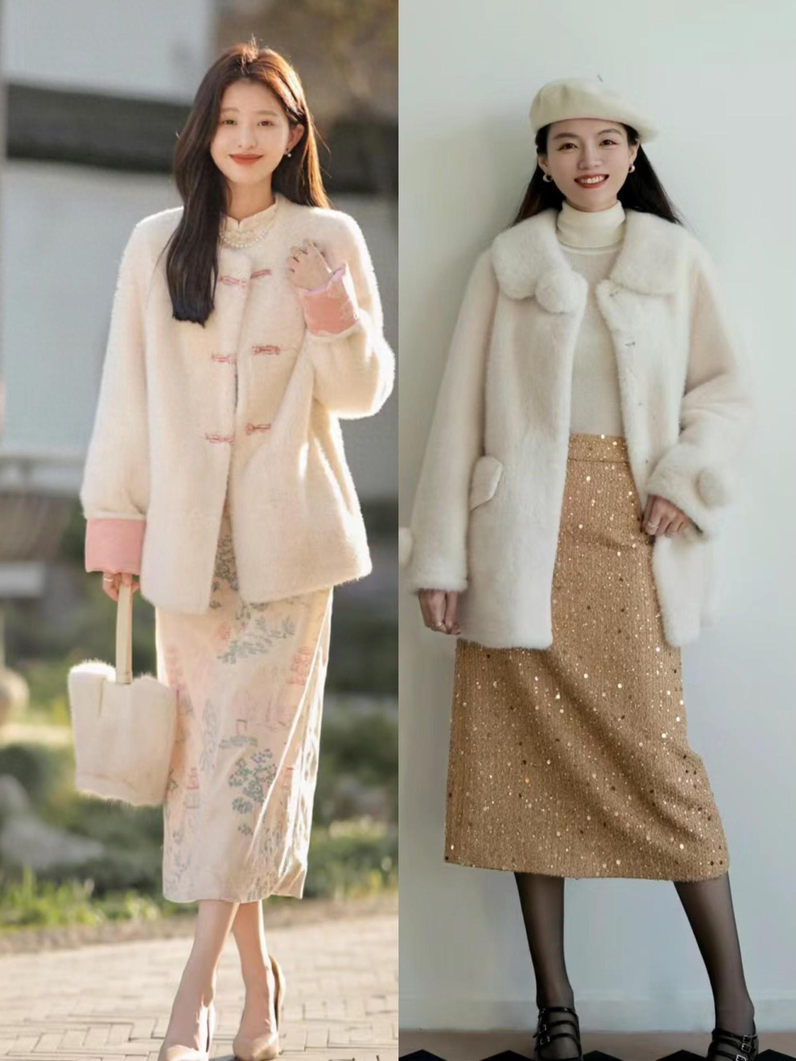 看似簡約卻婉約大方的一組穿搭,更加適合氣質柔美的女人。毛呢面料的白色大衣,注入了經典的國風元素,擁有同色系毛領的修飾。