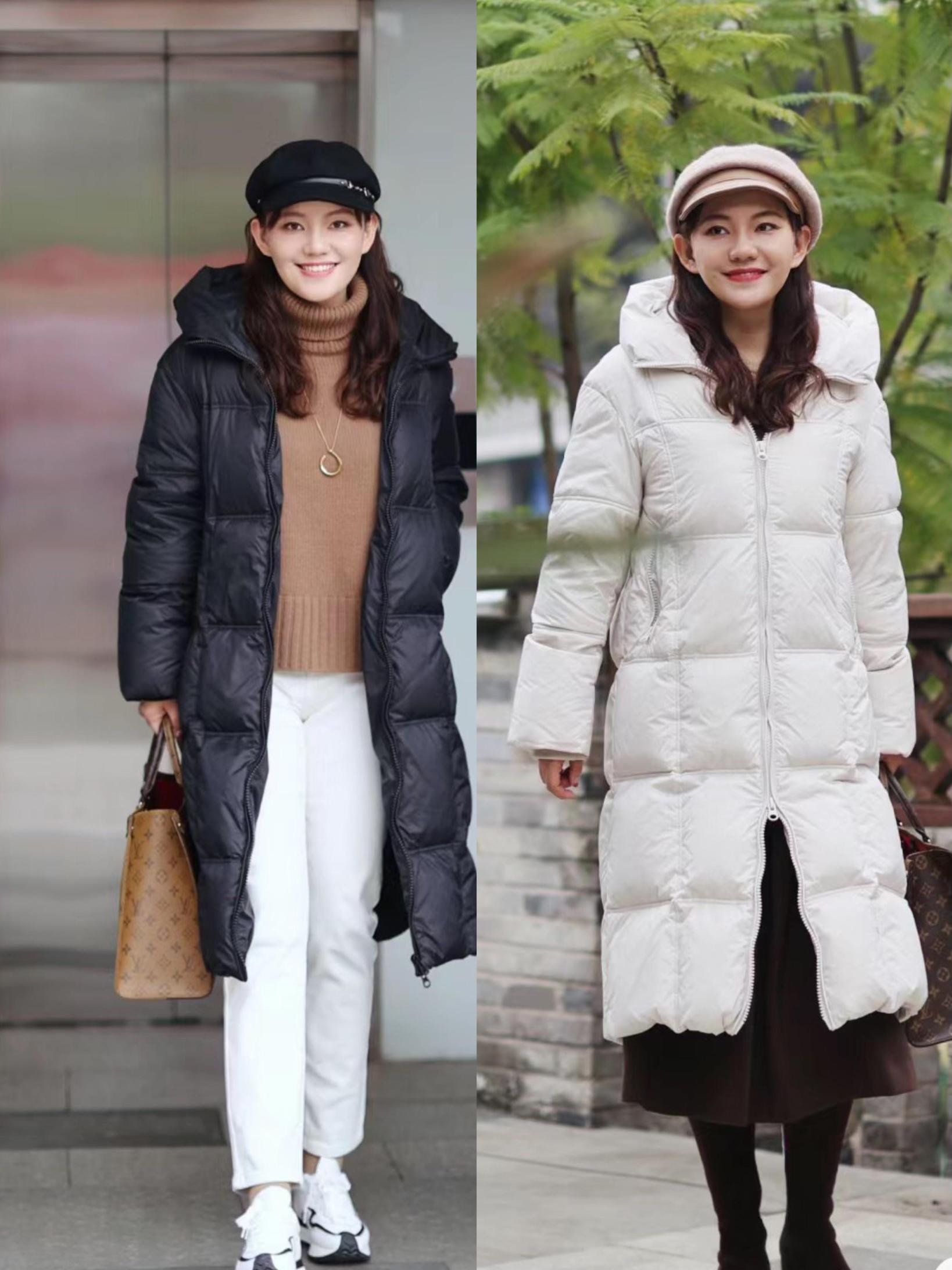 一件中長款的羽絨服,舒適保暖又更加體面,我們可以配高腰的過膝半身裙,展現女性的溫柔魅力。過膝半身裙的裙襬,儘量超過羽絨服的下襬、這樣層次感會更清晰。