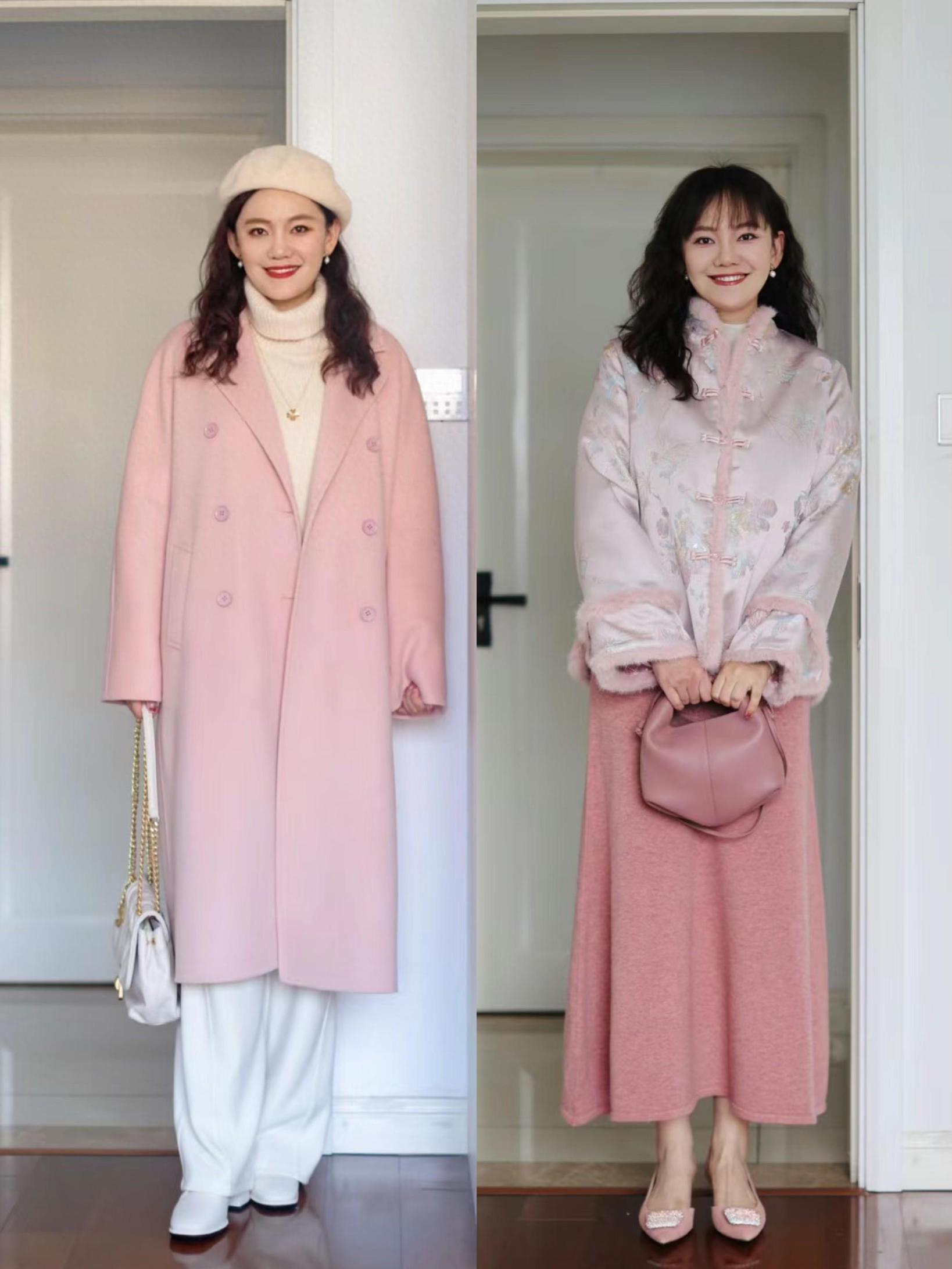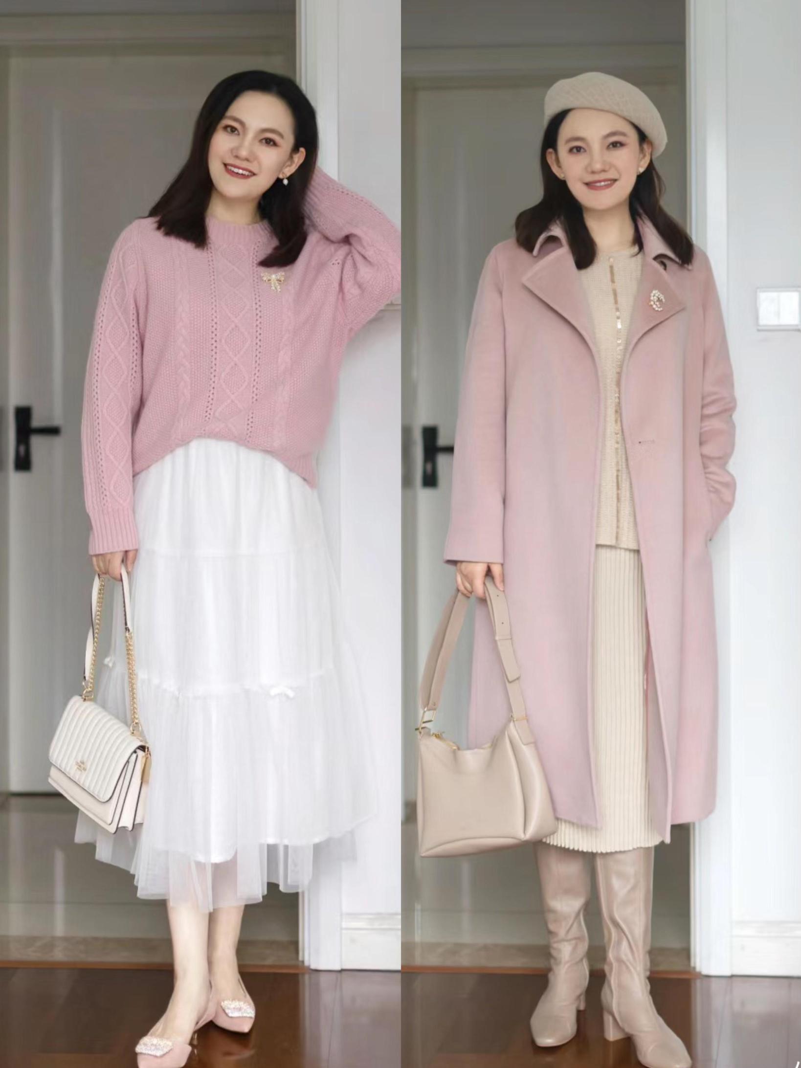 淺粉色的絞花毛衣、或者淺粉色的雙面呢大衣,都帶和一種溫和清新的美。亮度不高的淺粉色、即便是暖黃皮的人羣也可以駕馭,清新大方、有一種自然之美。