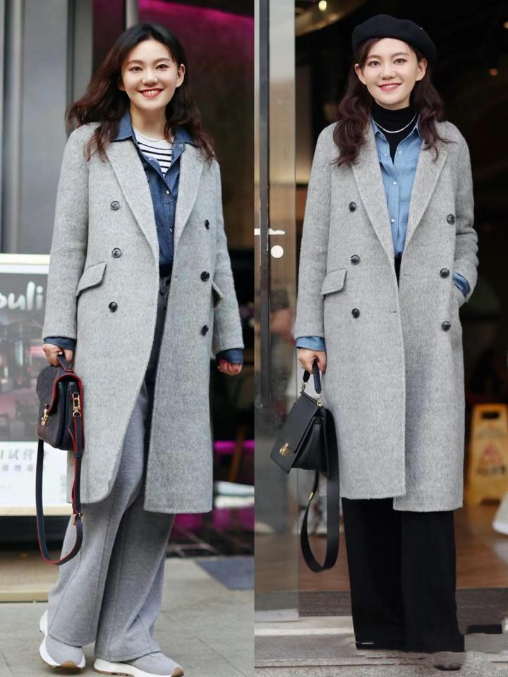 稍微偏向休閒風格一點的毛呢大衣,自然是與牛仔褲更加匹配。牛仔褲的款式,不會太過呆板,配休閒風大衣時尚又日常。