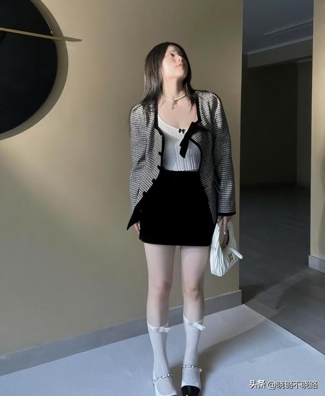 梨形身材想要通過穿搭改善,首選還是裙子,很多胯寬的梨形身材其實有着小腿細的特點,如果你符合這個特點,那麼可以選擇短裙作爲日常穿搭的下裝單品。