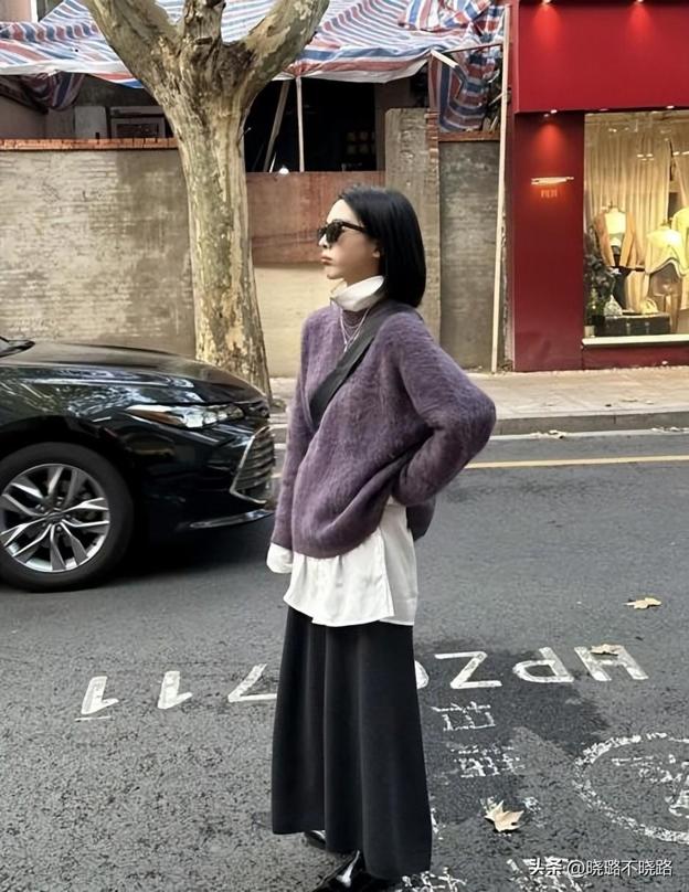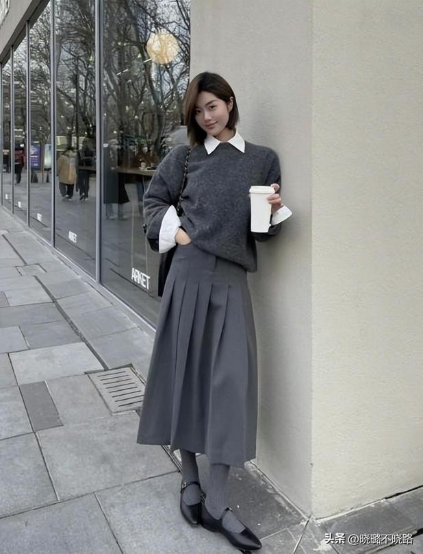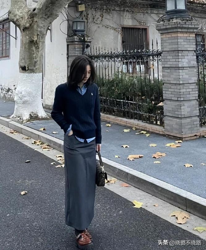 如果是整體比例不好,即使是穿高腰褲,襠線都會暴露你身材五五分的缺點,所以五五分的身材也是穿半裙比較好,並且是穿長半裙,通過長半裙的延伸感和穿搭佔比來改變視覺比例,別人再也看不出你五五分了。