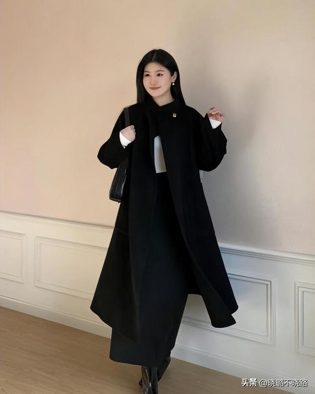 不管是冬季穿搭還是夏季穿搭,如果通體都是鬆鬆垮垮的穿搭,那麼一定會是顯胖的,想要顯瘦就要有一定的緊緻感,衆所周知黑色是收縮色,可以通過暗色來塑造緊緻感。