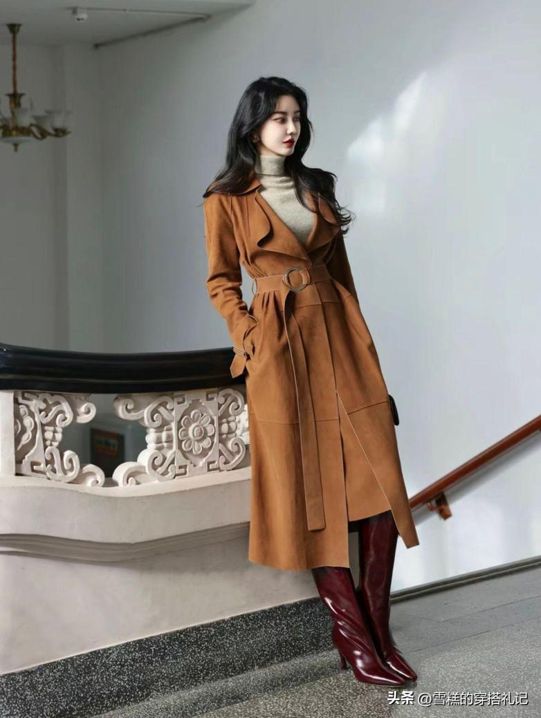 最後一種穿搭就建議大家的泥大衣可以優先於選擇卡其色或者是棕色系這一類,它本身就自帶了一定的沉穩和溫柔感,那麼所選擇的內搭還是要偏向於淺色調一次來襯托優雅又溫柔的感覺。